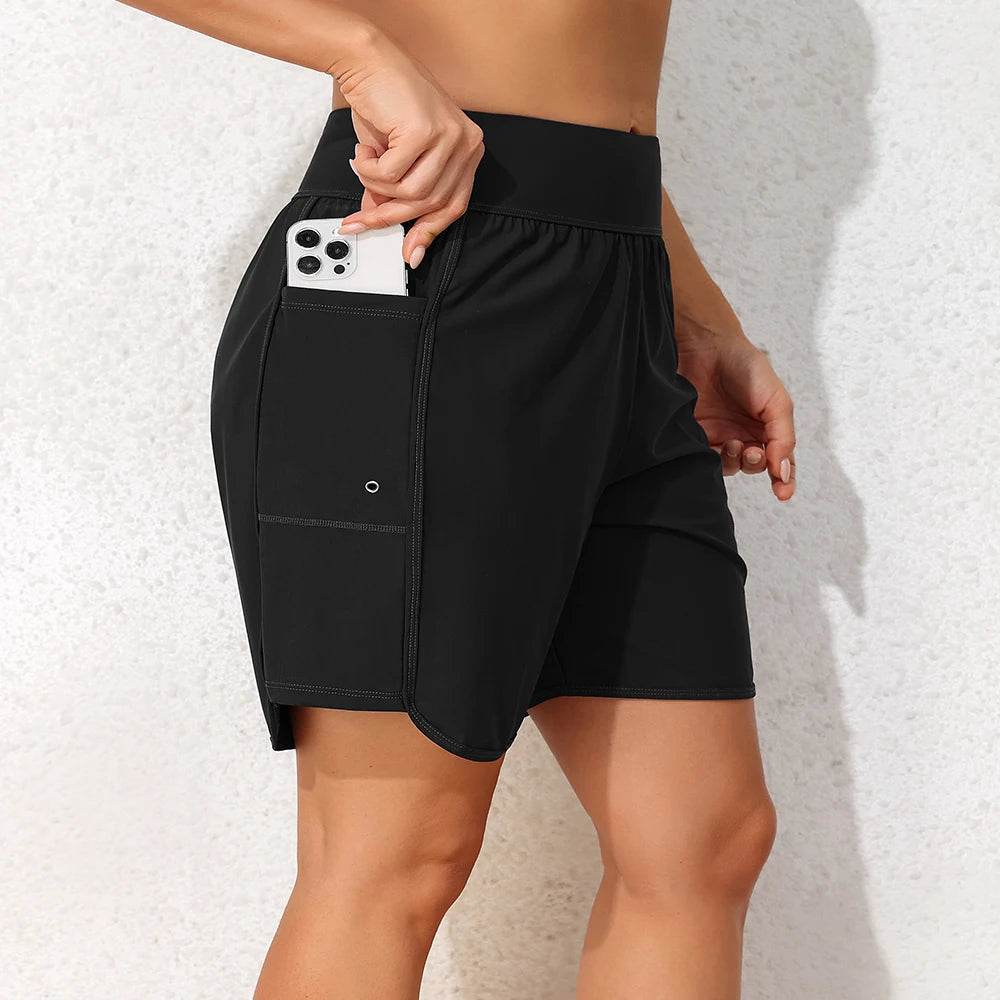 Women Solid 2 Side Pocket High Waist Fitness Shorts