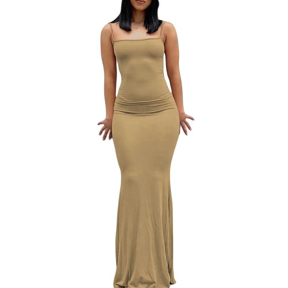 • Design: Spaghetti straps, bodycon fit, maxi length
