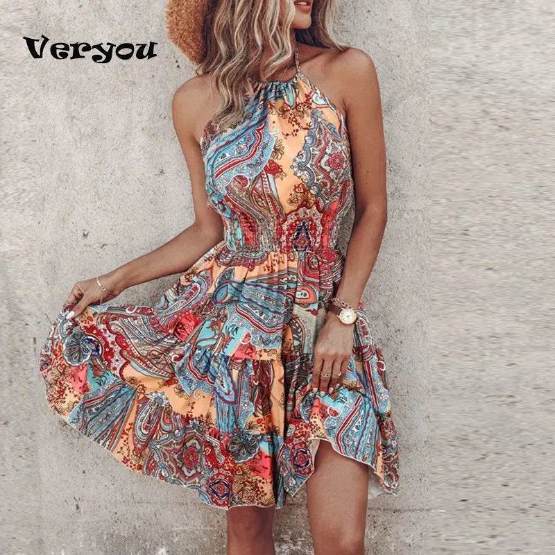 Explore the Women Summer Halter Floral Mini Dress and embrace the carefree spirit of summer with Veryou's signature style!