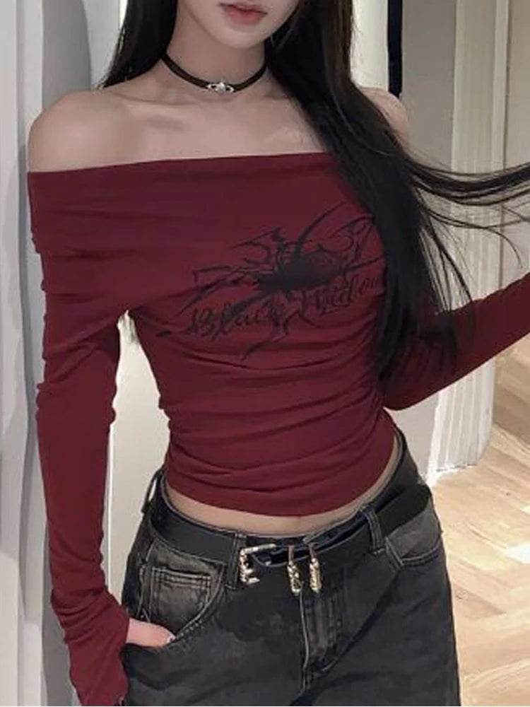 This crop top features a striking slash neck design that adds a touch of edginess to your outfit. Available in a rich red color, it pairs effortlessly with your favorite jeans or skirts, making it a versatile addition to your wardrobe. Whether you're heading out for a casual day with friends or a night out, this top has you covered.