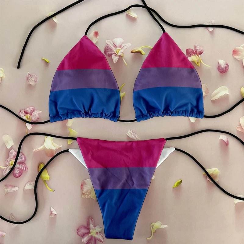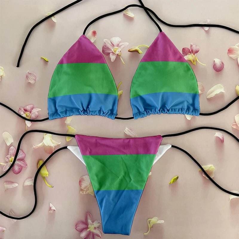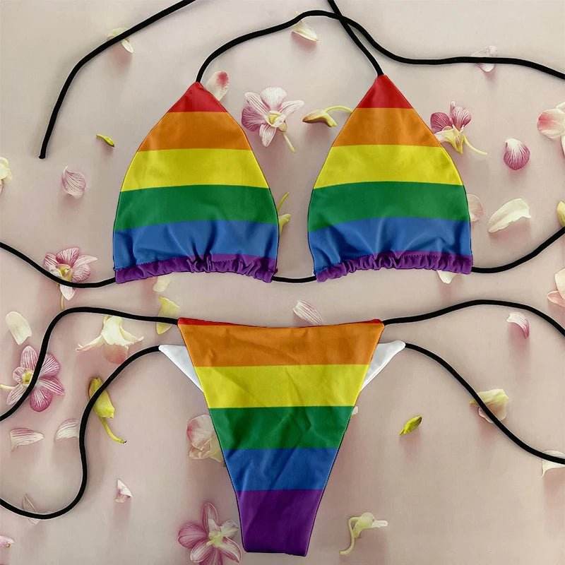 Women Rainbow Beach 3D Bikini Swimwear Set