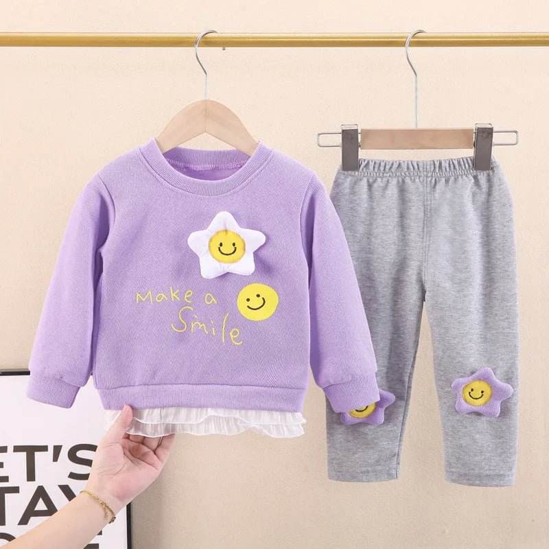 This tracksuit set comes in various colors, allowing you to choose the perfect shade for your baby girl. Sizes range from 9M to 4T, ensuring a great fit as your child grows.
