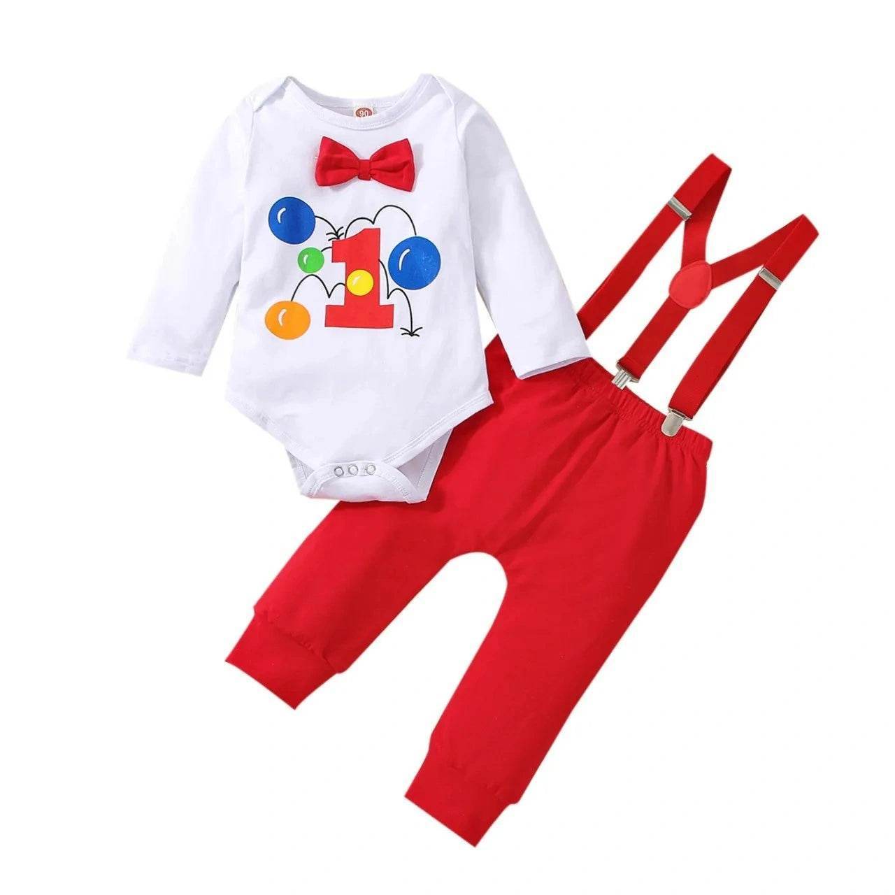 Designed with both style and practicality in mind, these outfits feature vibrant colors and charming details like suspenders and bow ties. Available in a variety of colors including red, blue, and more, you can choose the perfect look for your baby's big day. The sets come in sizes suitable for babies aged 6-18 months, ensuring a perfect fit for your growing child.