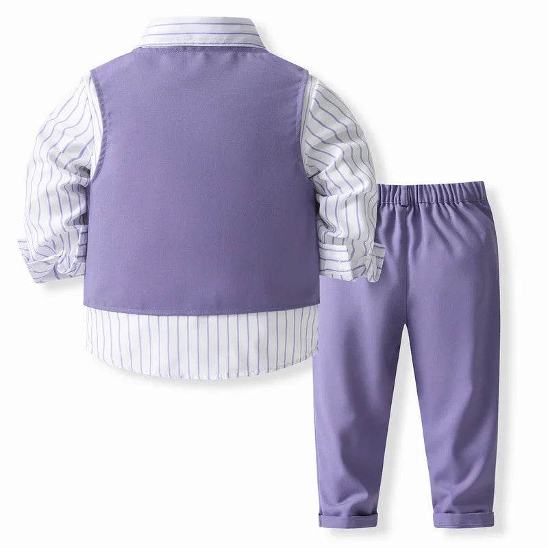 Whether it's a family gathering, wedding, or holiday celebration, this outfit is designed to make your child stand out. The rich purple color adds a touch of elegance, while the soft materials ensure all-day comfort. Available in sizes ranging from 12 months to 5 years, it's easy to find the perfect fit for your growing boy.
