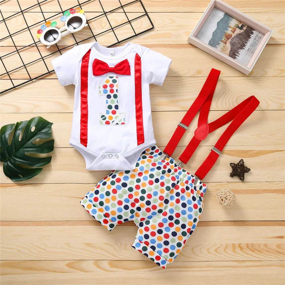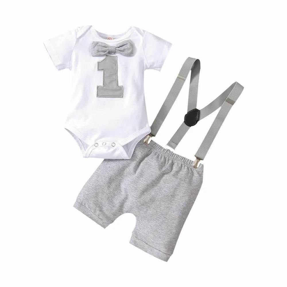 Celebrate in Style: Baby Boy First Birthday Rompers Overall Clothing Set