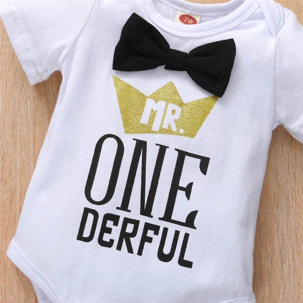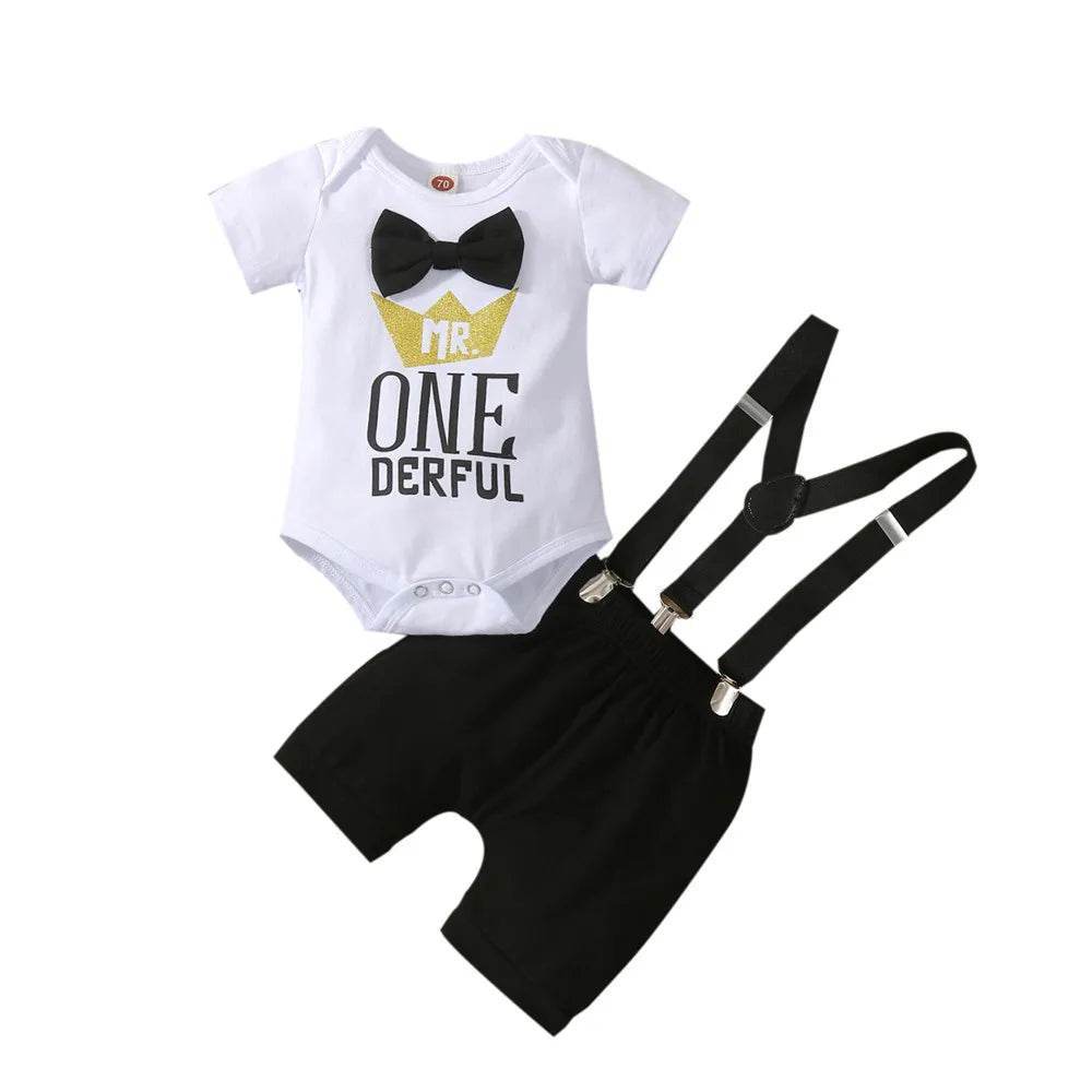 Baby Boy First Birthday Rompers Overall Clothing Set