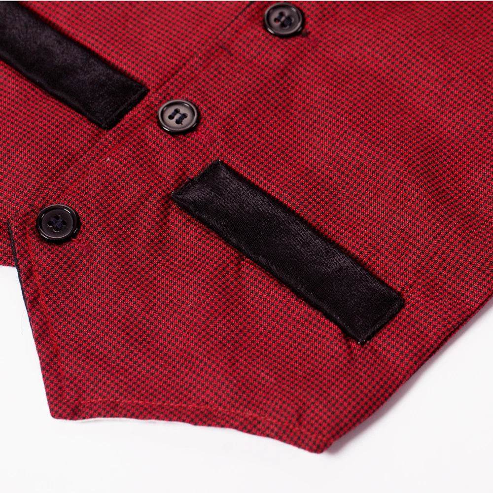 The set includes a comfortable romper, a stylish vest, and adorable shoes, all designed to make dressing up easy and fun. The romper features a classic white shirt with suspenders, while the vest adds a touch of elegance with its rich red color. The shoes, with their soft soles and secure fit, ensure your baby can move comfortably.