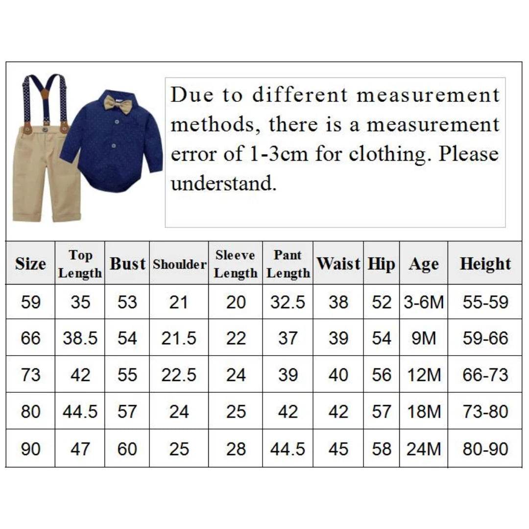 Introducing the Baby Boy 3-24M Infant Clothing Set Gentleman Outfit, perfect for making your little one look dapper and adorable. This charming outfit is designed for baby boys aged 3 to 24 months, offering a sophisticated yet comfortable look for any special occasion.