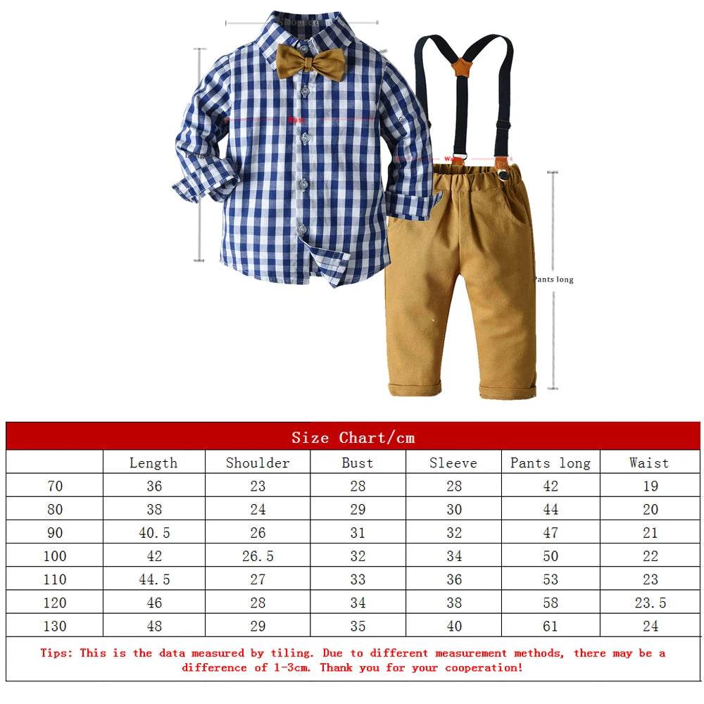 Baby Boy Plaid Top Pants Suspender Gentleman Outfit