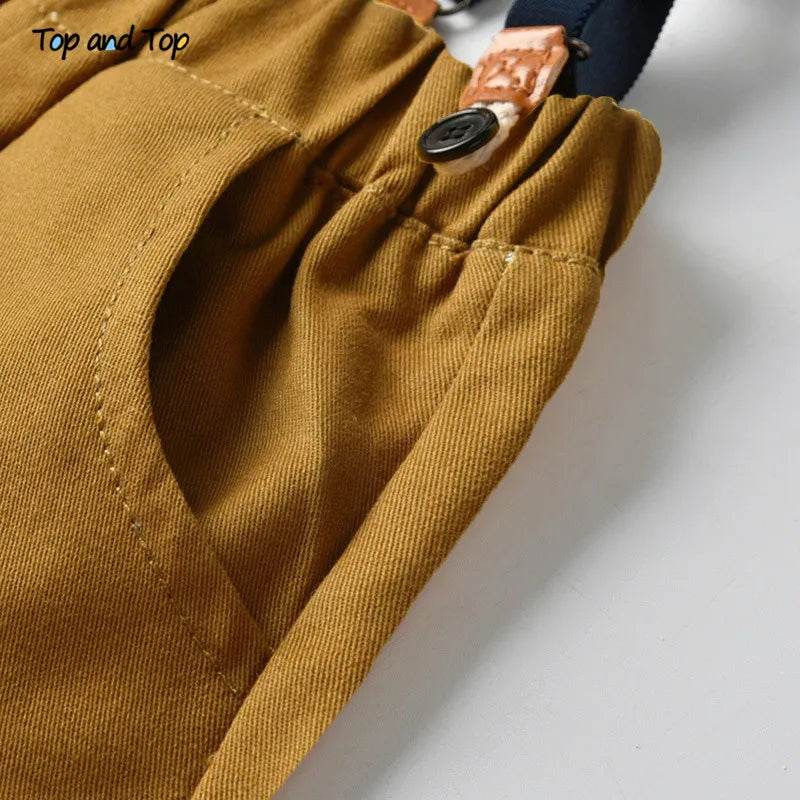 Whether it's a family gathering, a birthday party, or just a day out, this outfit is versatile enough to suit any event. The suspenders not only add a fashionable touch but also provide a secure fit, allowing your child to move freely and comfortably.