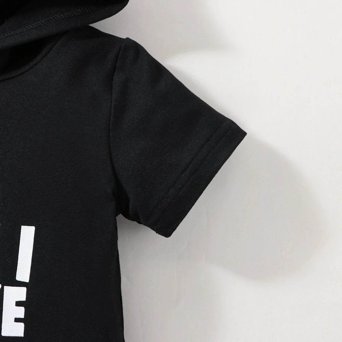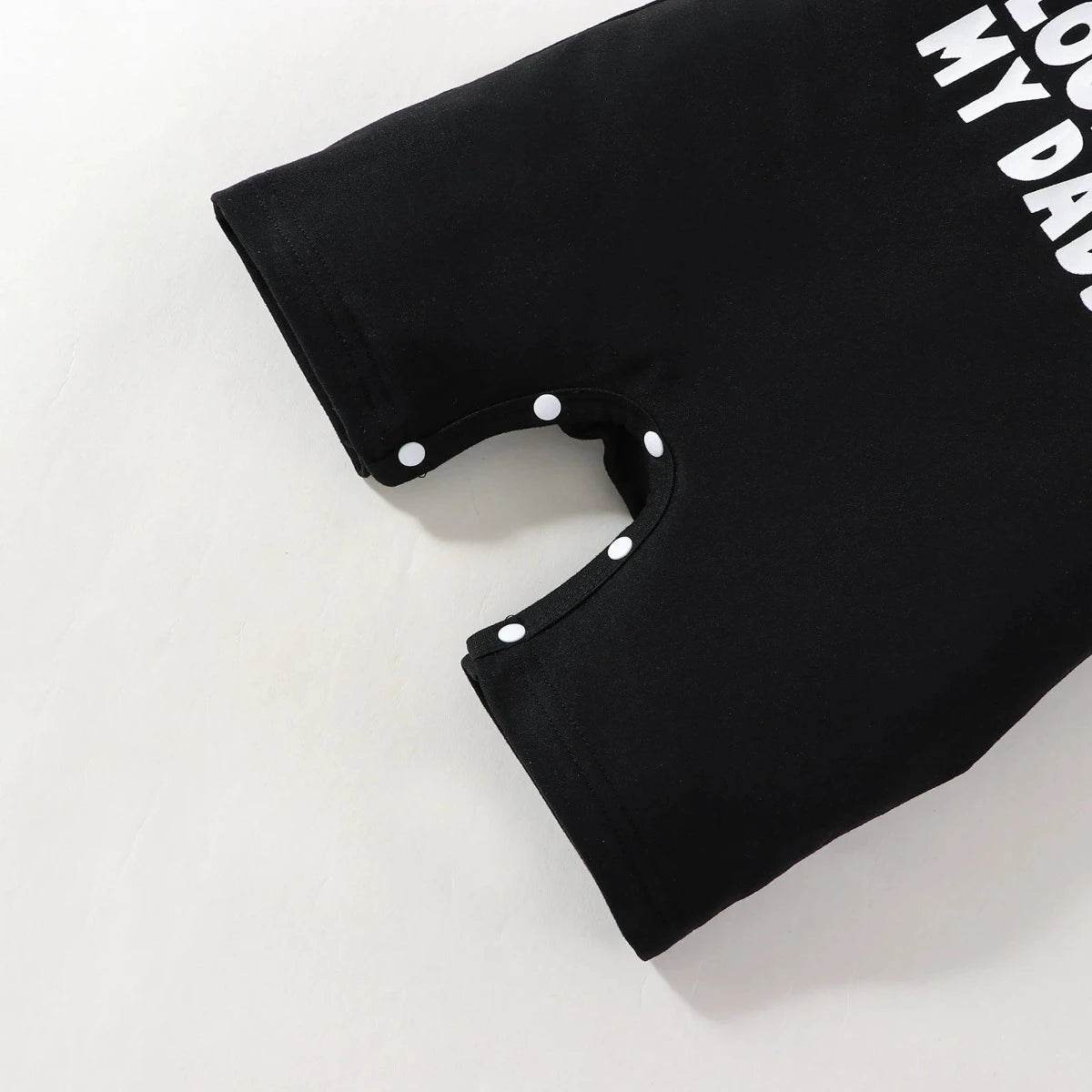 Designed for babies aged 0-24 months, this romper features short sleeves to ensure your little one stays comfortable in warmer weather. Available in classic black, it’s easy to match with any accessory or footwear, making it a versatile choice for any occasion. Whether it's a family outing or a casual day at home, your baby will look adorable and feel great.