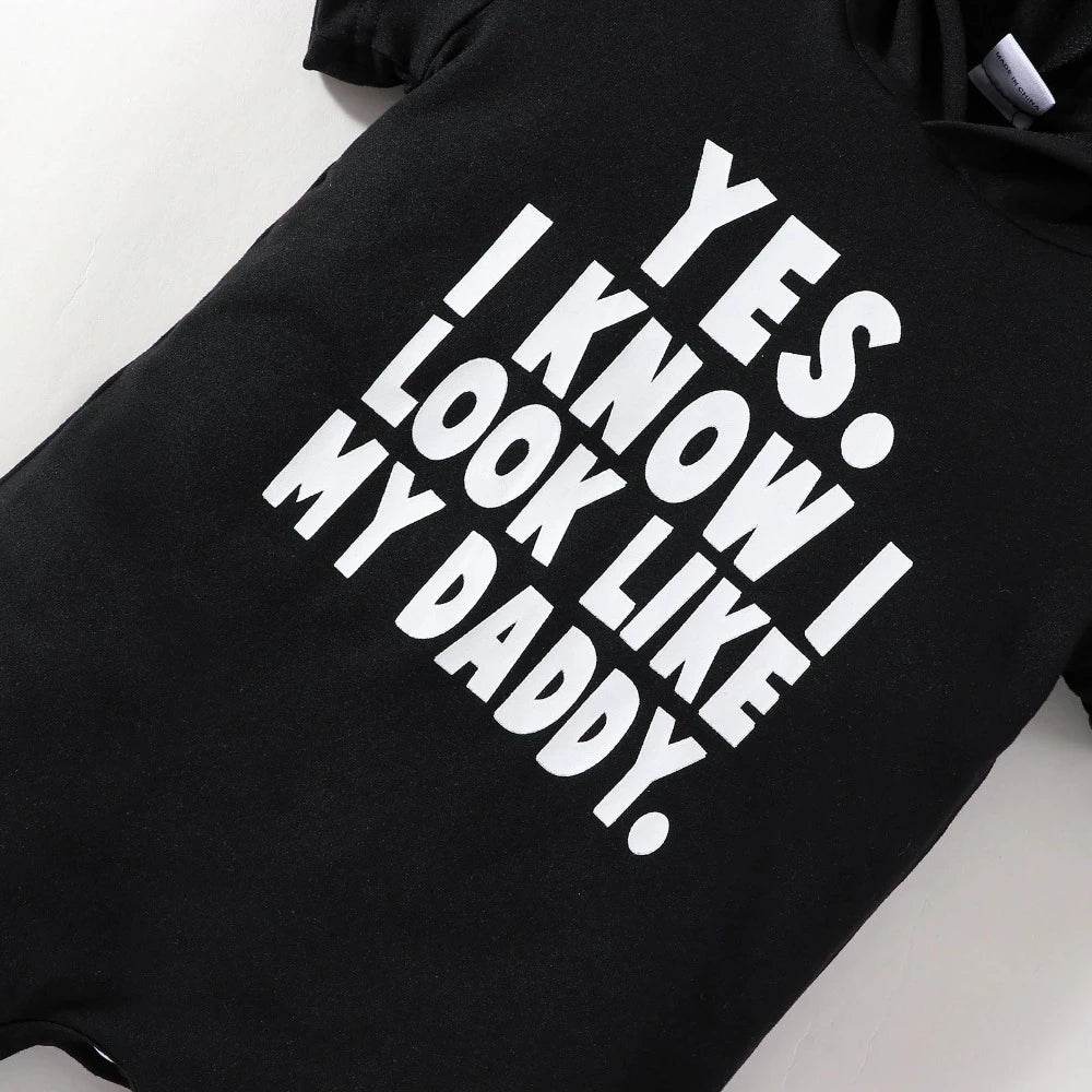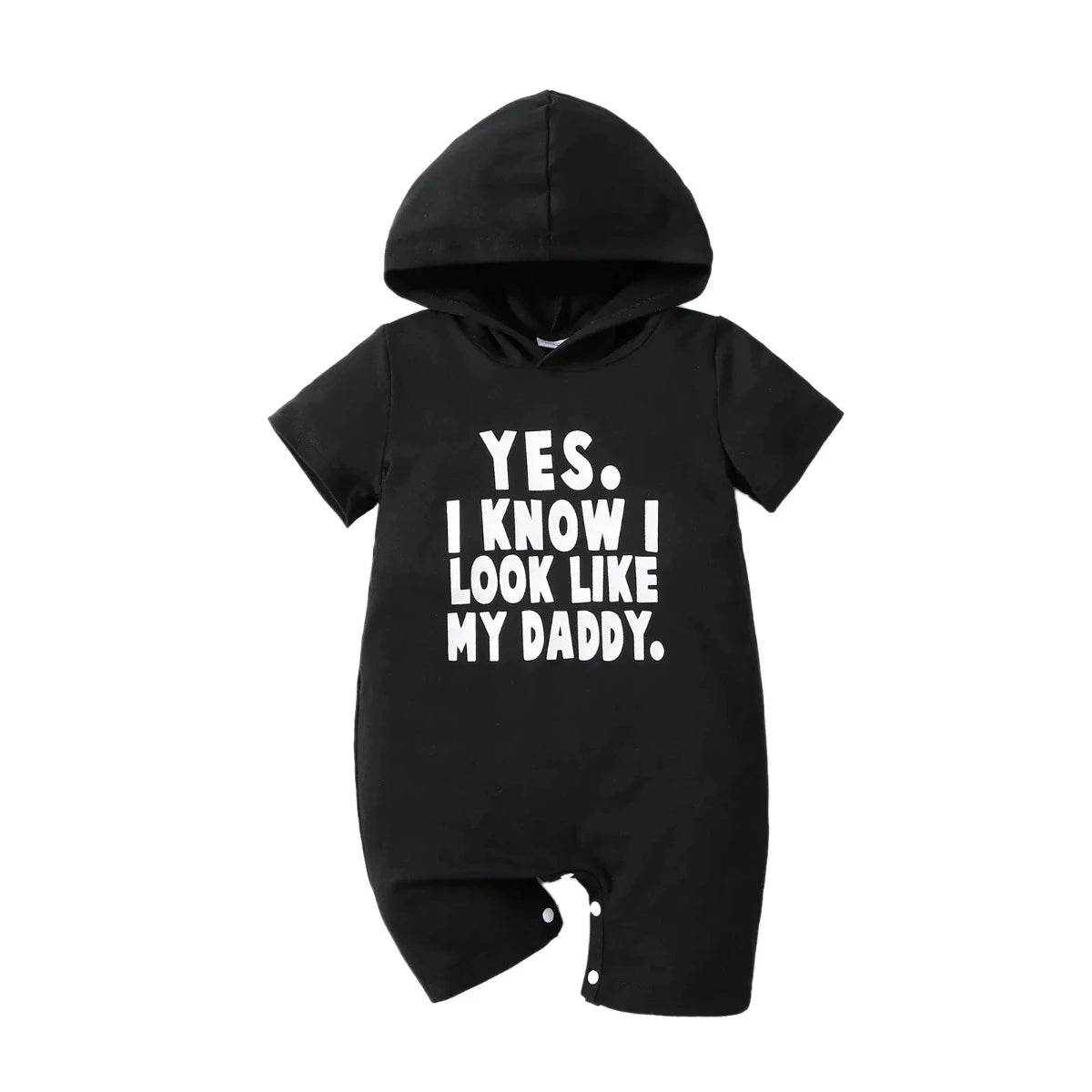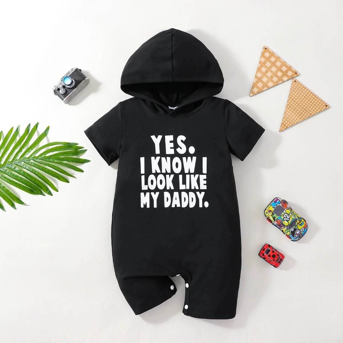 Introducing the Mioglrie Baby Boys Casual Look Like Daddy Romper, a charming outfit that brings a smile to every face. Crafted from soft and breathable polyester, this romper is perfect for keeping your baby cool and comfy during warm summer days. The playful hooded collar adds a trendy touch, while the cute letter pattern, "YES, I KNOW I LOOK LIKE MY DADDY," brings extra charm and fun to your baby's wardrobe.