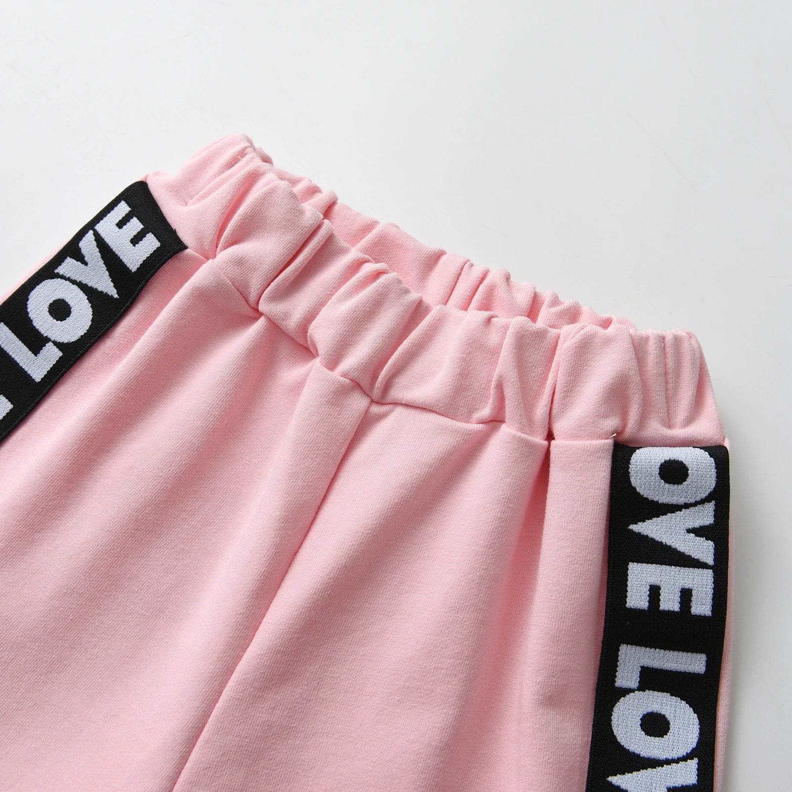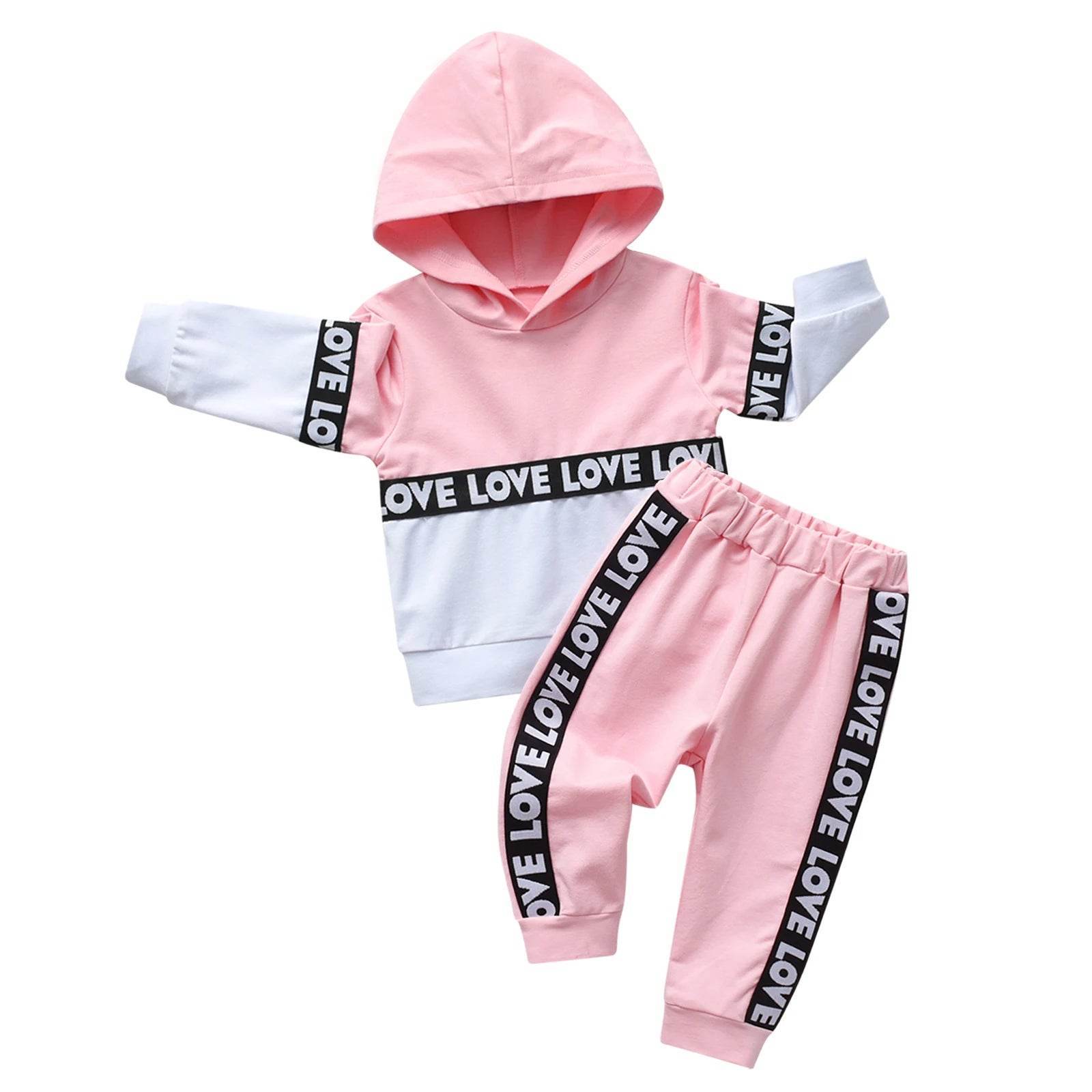 • Adorable "LOVE" design on hoodie and pants