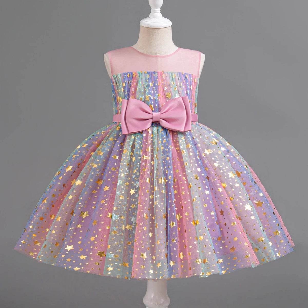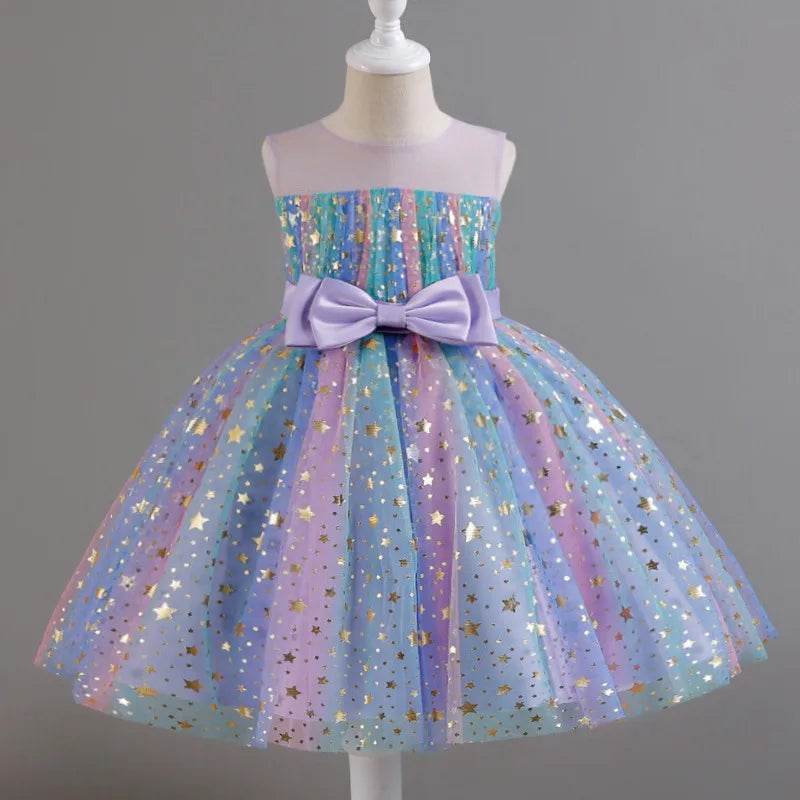 This enchanting dress features a sleeveless design, allowing for easy movement and comfort. The sparkling sequins add a touch of glamour, making your child the center of attention. With its princess-like design, your little one will feel like a star.