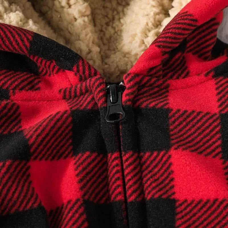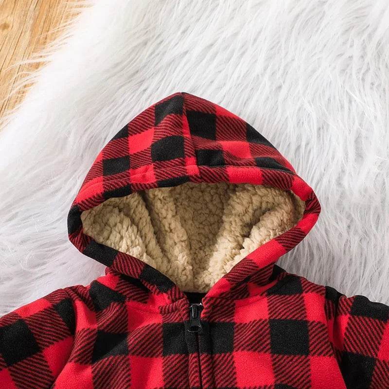 This romper is not just about looks; it's designed for practicality too. The easy-to-use snaps make changing a breeze, while the hood provides extra warmth. Whether your little one is crawling around the house or out for a family outing, this romper ensures they stay comfortable and stylish.