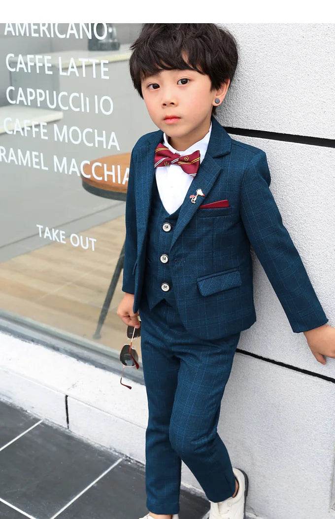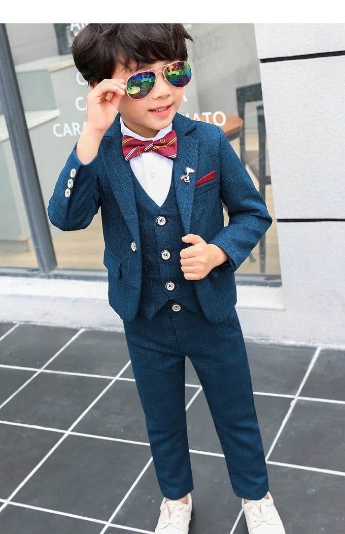 The images showcase a young boy confidently wearing the outfit, highlighting its sleek design and vibrant colors. The tailored fit and attention to detail are evident, making it a must-have for any formal event.