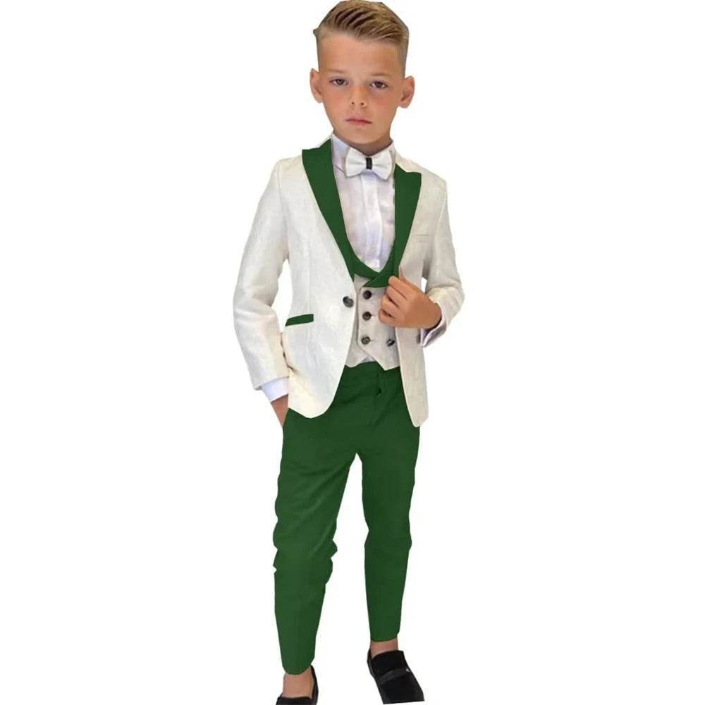 With sizes ranging from 3T to 14T, this outfit set is designed to fit boys aged 4-10 years comfortably. The set includes a smart jacket, a stylish vest, and matching pants, ensuring your child looks polished and sophisticated.