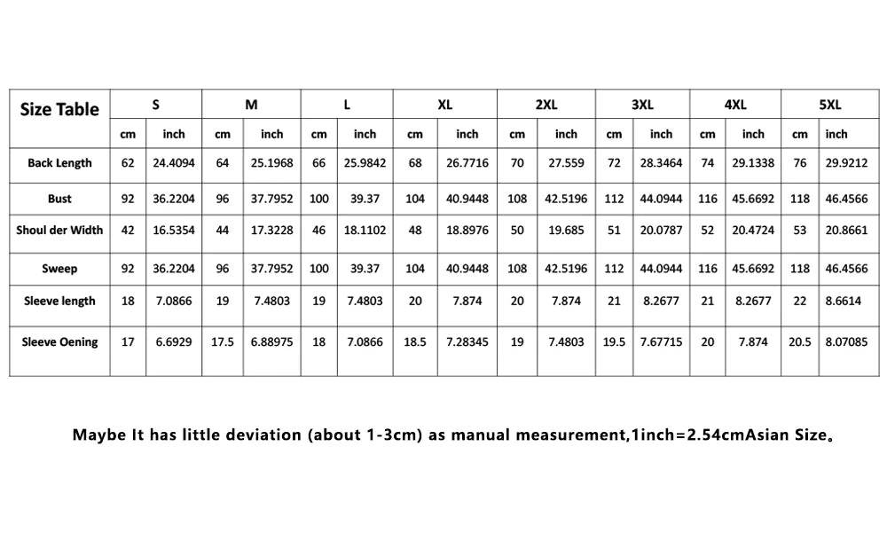 Available Sizes: S, M, L, XL, XXL, XXXL, 4XL, 5XL