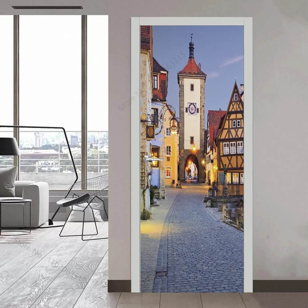 Applying this wallpaper is a breeze. Simply measure your door, cut the sticker to size, and apply. The durable material ensures it stays in place, providing a long-lasting decorative solution.