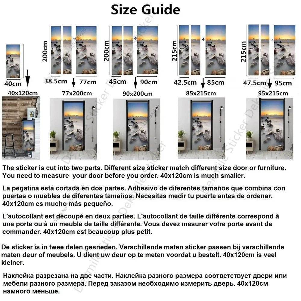 Sticker Size Dimensions 85x215cm Cut into 2 pieces 90x200cm Cut into 2 pieces 77x200cm Cut into 2 pieces 95x215cm Cut into 2 pieces