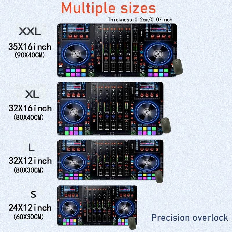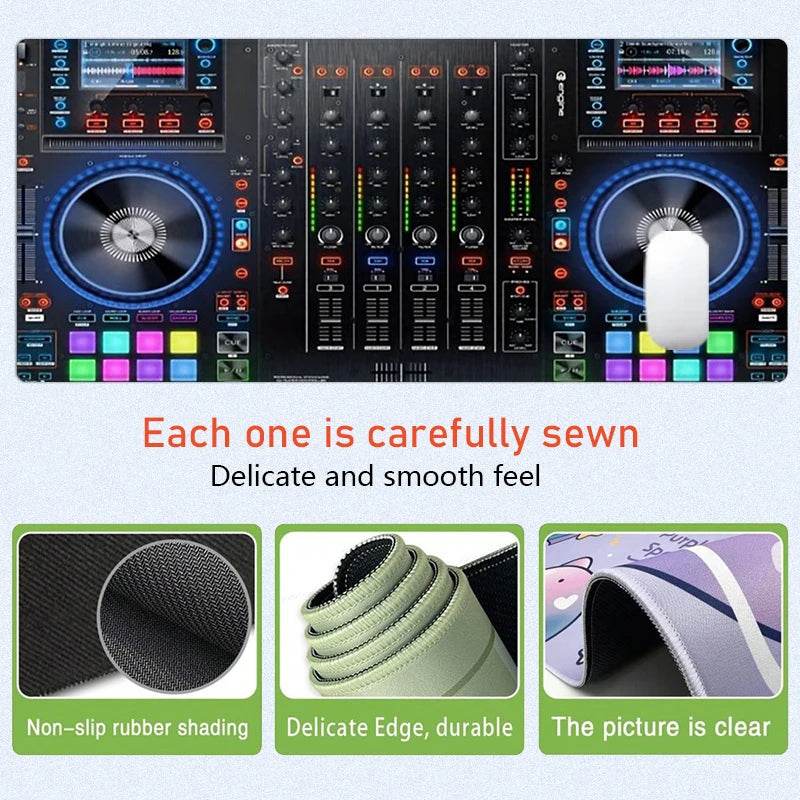 The images showcase the mouse pad's vibrant DJ controller design, which not only enhances your workspace but also inspires creativity. The detailed graphics and vivid colors make it a standout piece in any DJ setup.