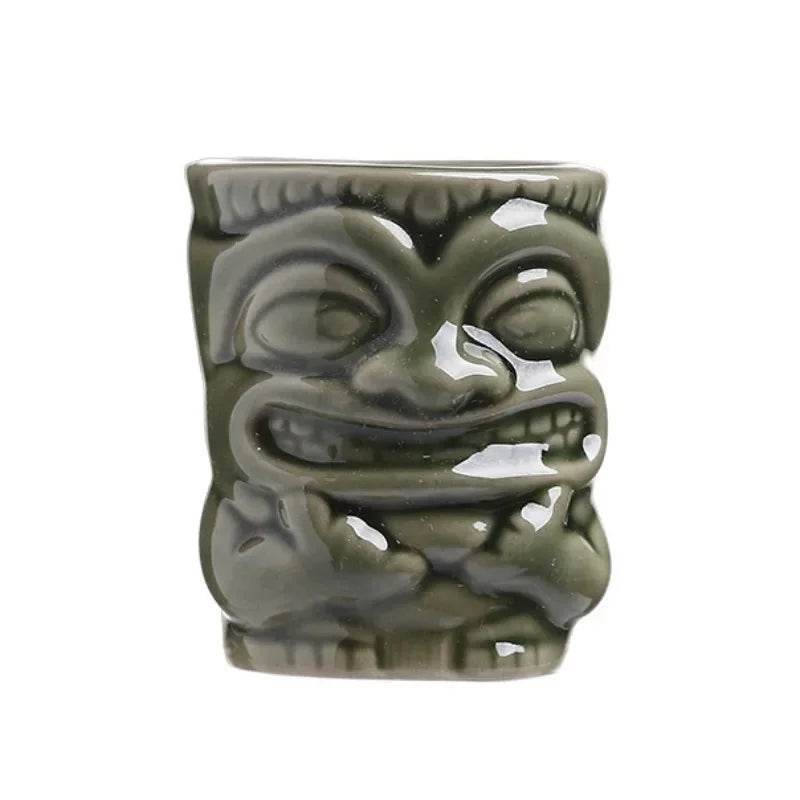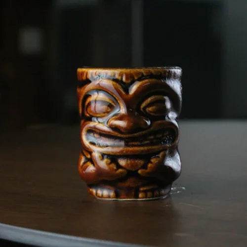 Available in a variety of colors including blue, brown, and green, each Tiki Mug boasts a unique character and charm. The intricate details and glossy finish make these mugs a standout piece in any barware collection. Whether you're serving up a tropical cocktail or a simple shot, these mugs add a touch of fun and flair.