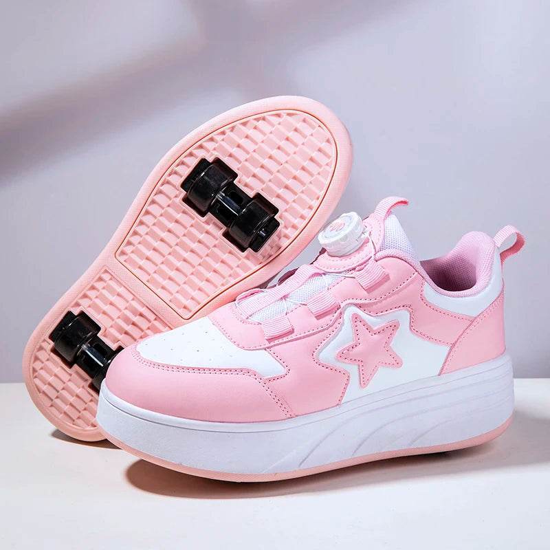 Introducing the Girl Trendy 4-wheel Roller Skate Sneakers, where style meets functionality. Perfect for young adventurers, these skates offer a smooth ride with their four-wheel design, ensuring easy maneuverability. The trendy look will make any girl stand out while enjoying the thrill of gliding.