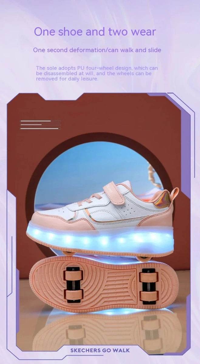 Let your child step into a world of color and excitement with the Girls LED USB-Charging Skate Luminous Shoes. Order now and watch them light up the night!