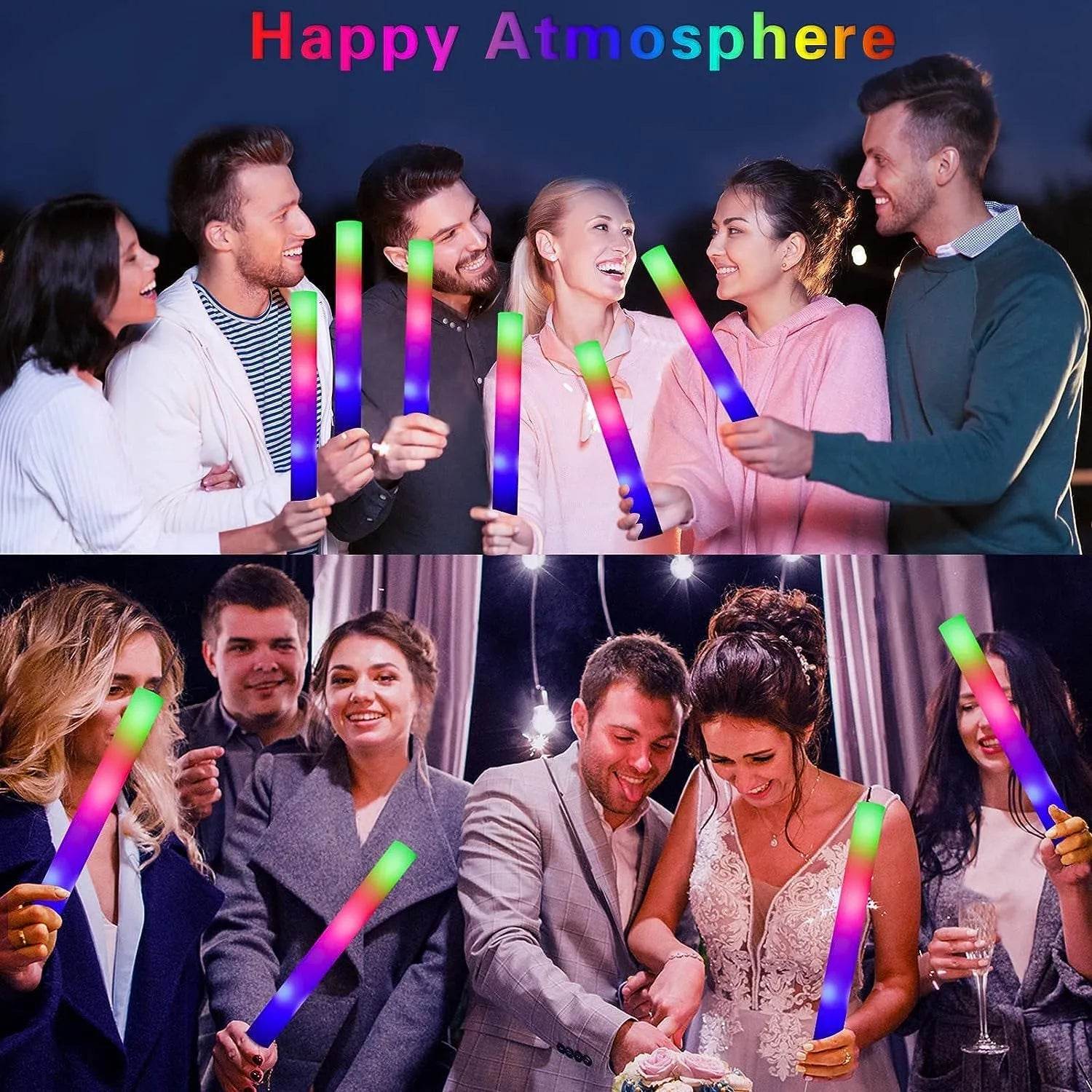 • Colorful Fun: With a stunning RGB display, these glow sticks light up in a spectrum of colors, creating a magical atmosphere.
