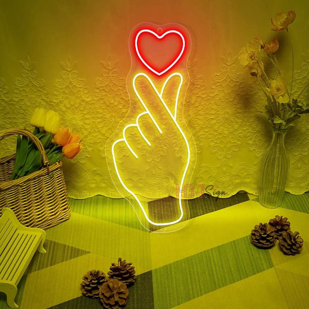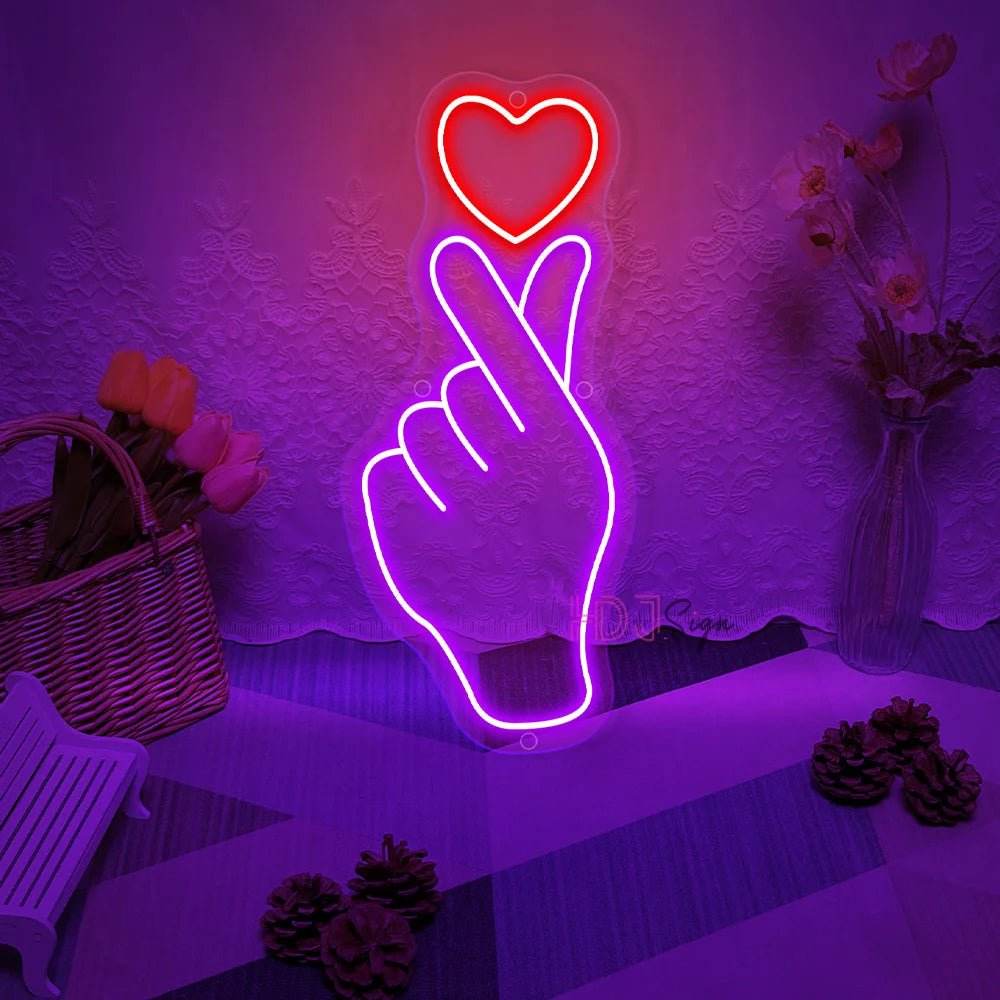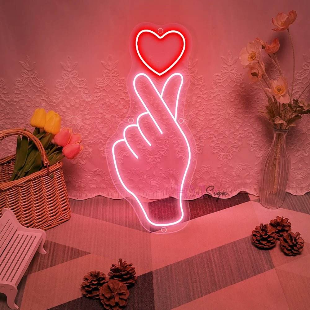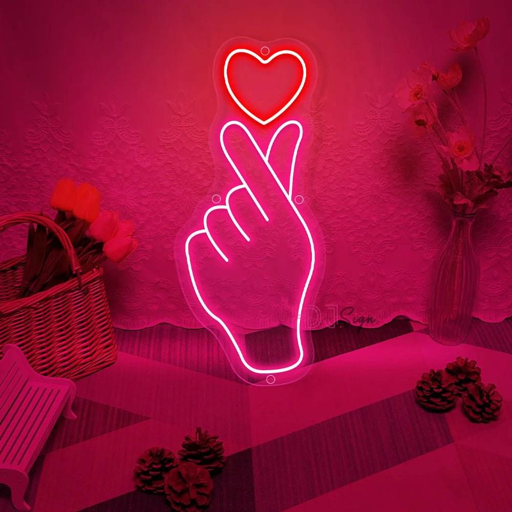 Illuminate your room with the Hand Heart Gesture Neon Sign LED Night Light. This captivating sign brings a modern charm to any space, perfect for expressing love in a unique and stylish way. Crafted with energy-efficient LED lights, it's both durable and environmentally friendly, making it a smart choice for your decor.