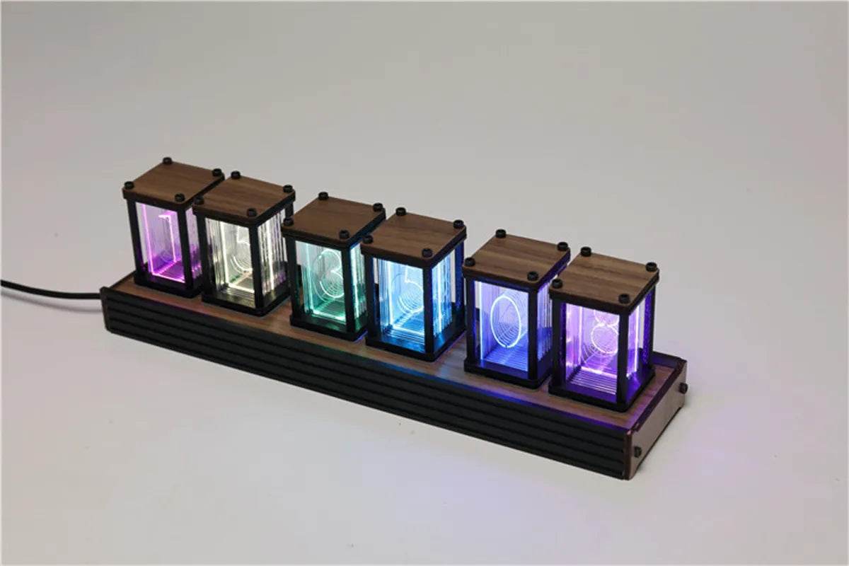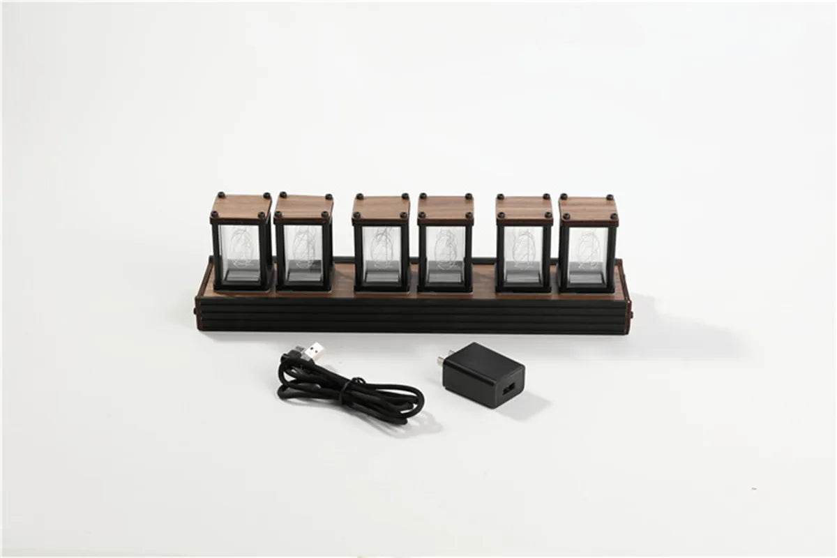 Transform your home with the Home Desktop Nixie Glow Tube Digital RGB Alarm Clock from Luminova. This stunning clock is crafted with high-quality bamboo and wood, blending antique charm with modern technology. It's not just a timepiece; it's a conversation starter that adds a unique touch to any room.