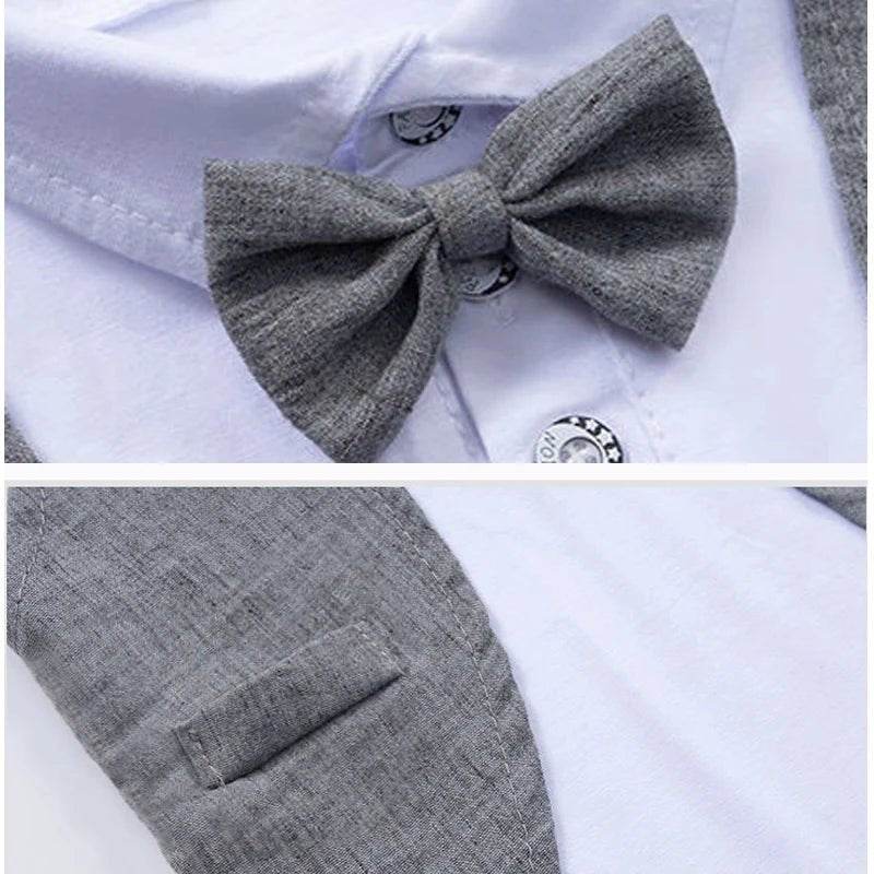 Make your little one’s wardrobe both stylish and functional with the Baby Boy Short Gentleman 1-4T Outfit Sets. Order now and let your child step out in style!