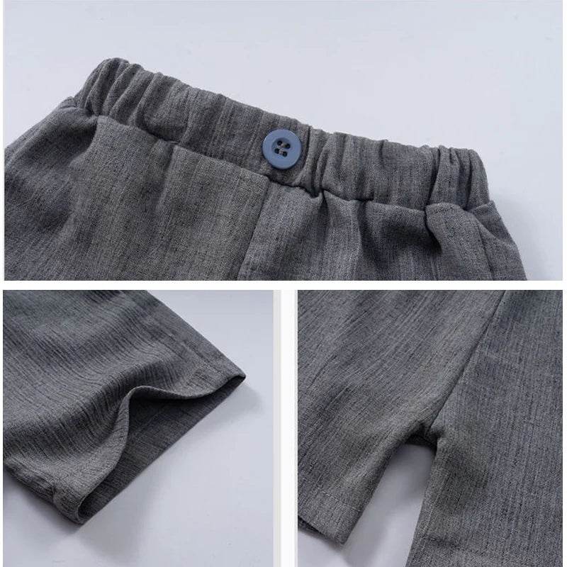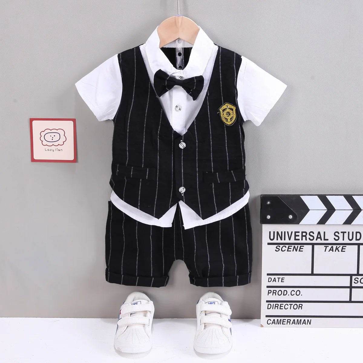 Introducing the Baby Boy Short 1-4T Outfit Clothing Set Gentleman Outfit, perfect for parents who want their little ones to look dapper and feel comfortable. These outfits are crafted with soft, breathable fabrics that ensure your child stays cool and comfy, whether it's a casual day out or a special occasion.