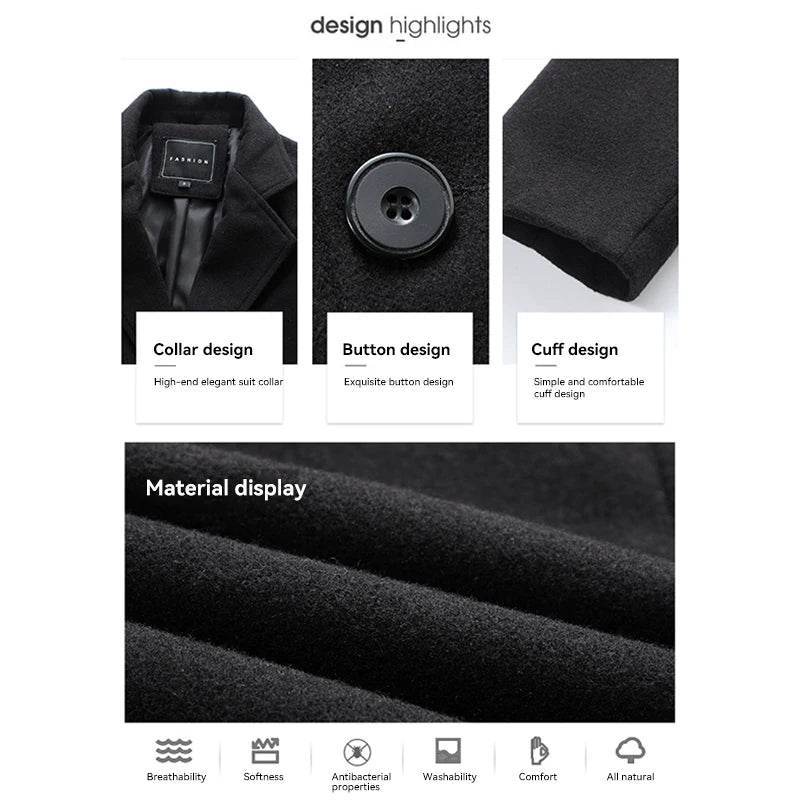 Introducing the Men's Business Casual Lapel Collar Winter Jacket by iSurvivor, a perfect blend of sophistication and warmth. Crafted from high-quality woolen material, this jacket is designed to keep you cozy during the chilly winter months while adding a touch of elegance to your business attire.
