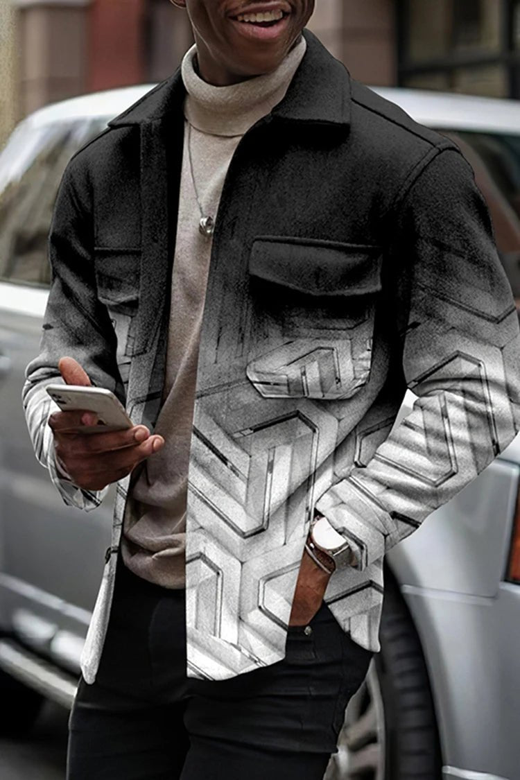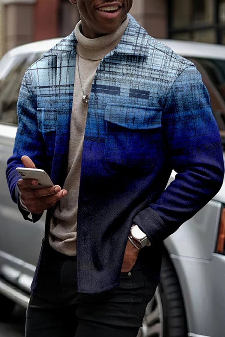 The jacket features a striking gradient pattern that transitions from rich brown to lighter shades, adding a modern twist to a classic look. The turn-down collar and single-breasted closure offer a sleek silhouette, while the conventional cuffs and regular sleeve style ensure a comfortable fit.