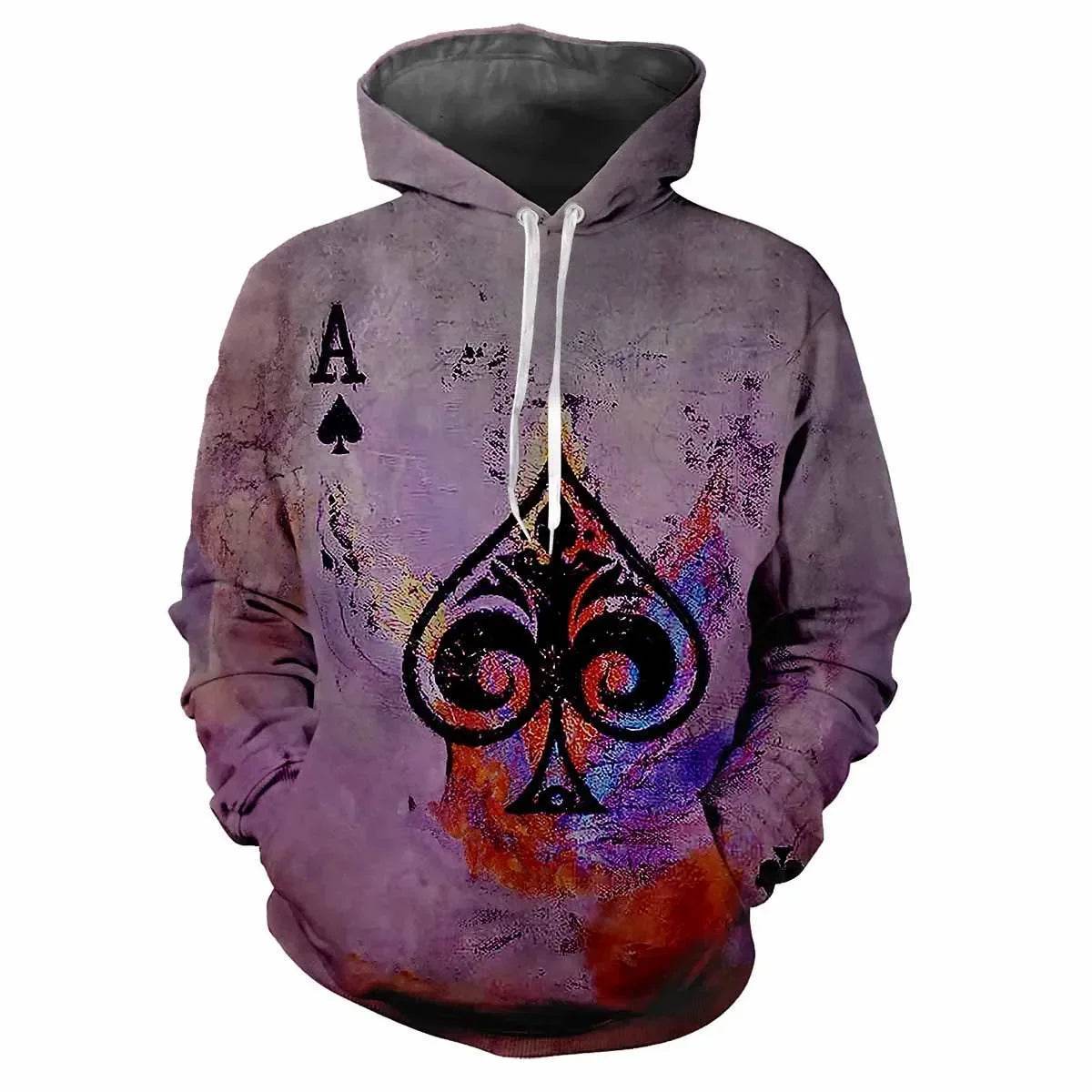 Get ready to turn heads at your next party with the Men Hot 3D Poker Ace Spades Party Hoodies. Perfect for poker enthusiasts and fashion-forward individuals, this hoodie combines comfort and style effortlessly. Made with high-quality materials, it ensures you stay warm while showcasing your love for the game.