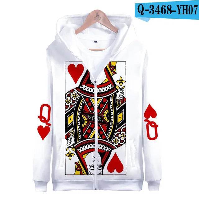Stand Out with the Men King Queen 3D QJK Poker Hoodies