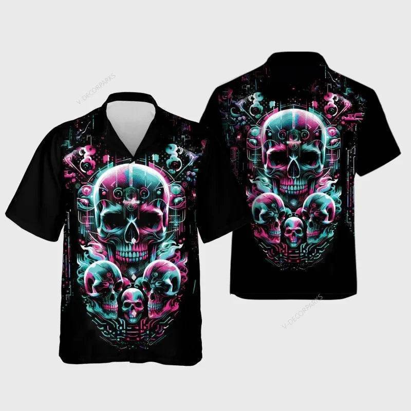 Get ready to turn heads and make a statement with the Men's Punk Skull 3D Hawaiian Shirt. Order yours today and embrace your bold side!