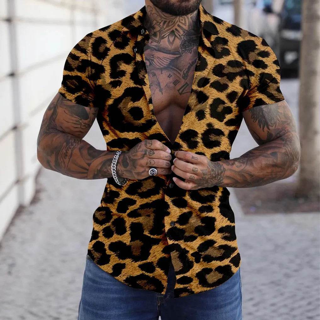 Make a bold fashion statement with Animalie's Men's Vintage Turn Down Collar Leopard Shirt and let your style roar!