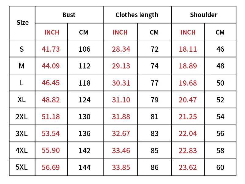 • Sizes Available: S, M, L, XL, XXL, XXXL, 4XL, 5XL