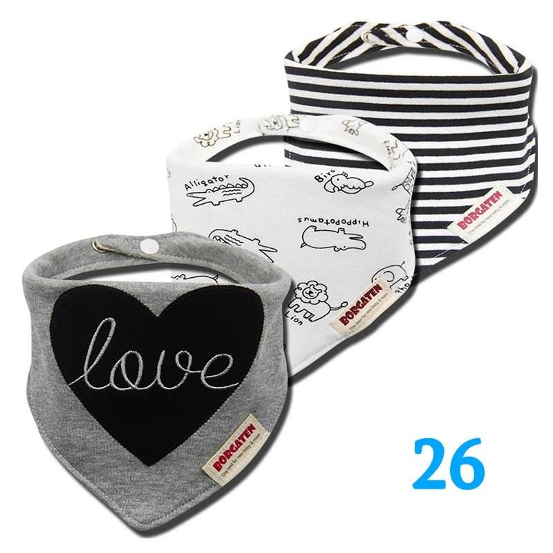 The bibs feature delightful designs that are both stylish and practical. With adjustable closures, they grow with your baby, providing a secure fit every time. The set includes three different designs, each with its own unique charm, ensuring your baby looks adorable while staying mess-free.