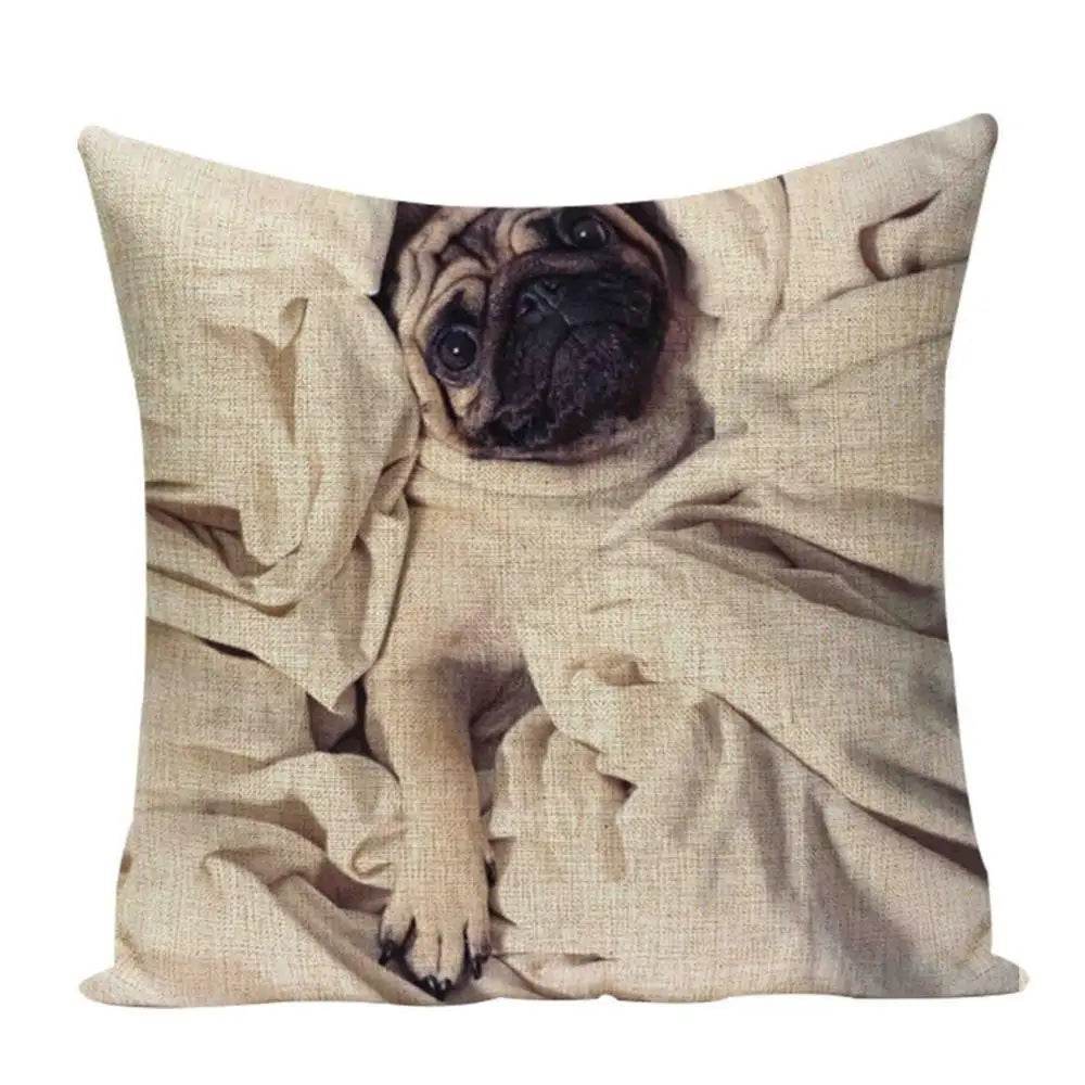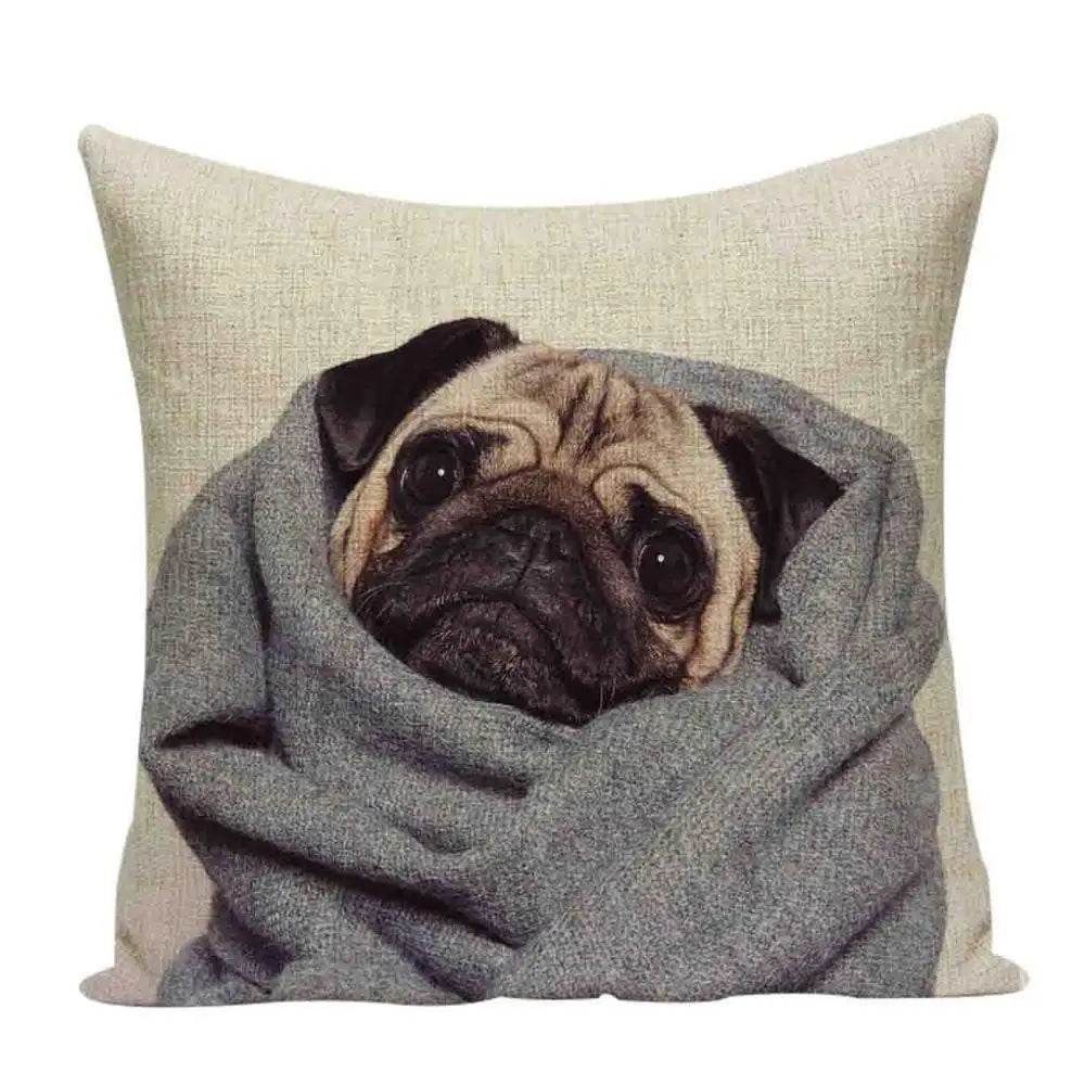 Whether you're a dog lover or simply want to add a unique touch to your home, this pillow cover is perfect for sofas, beds, or chairs. The pug's cute face wrapped in a cozy blanket brings warmth and joy, making it a great addition to any living room or bedroom.