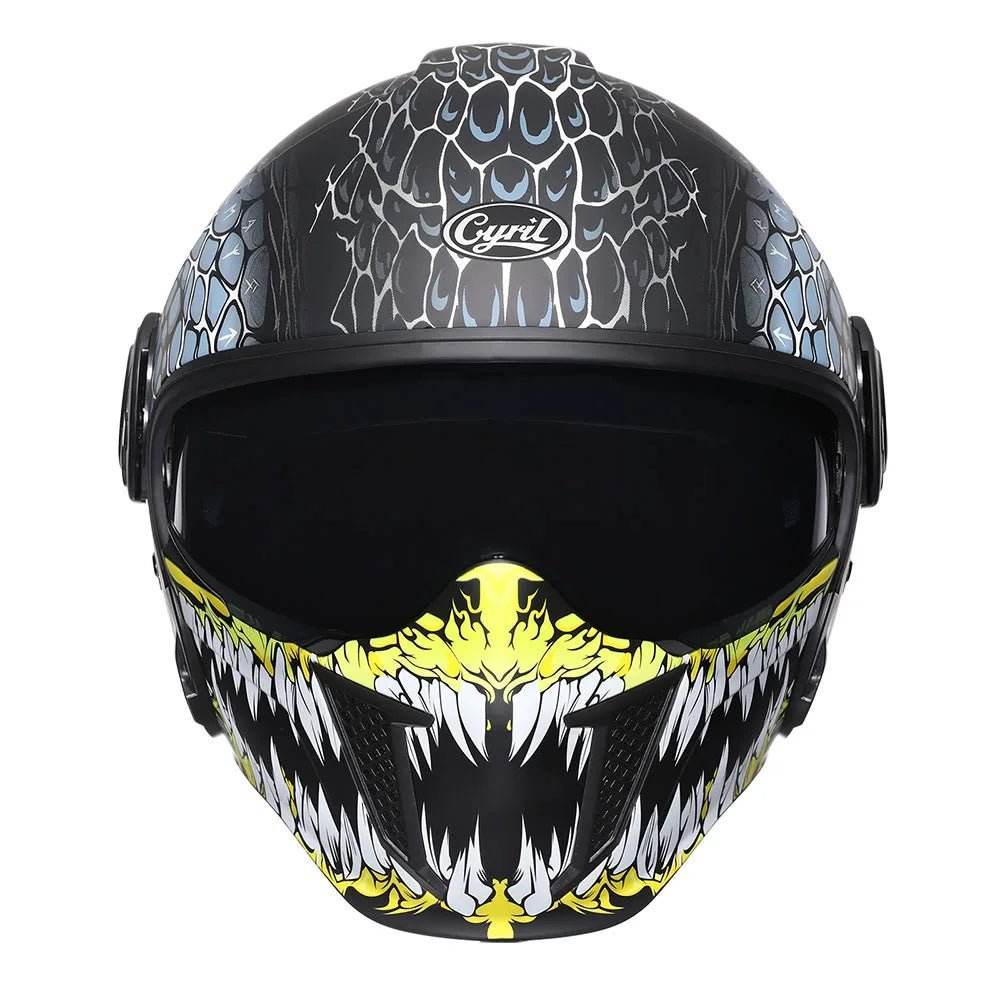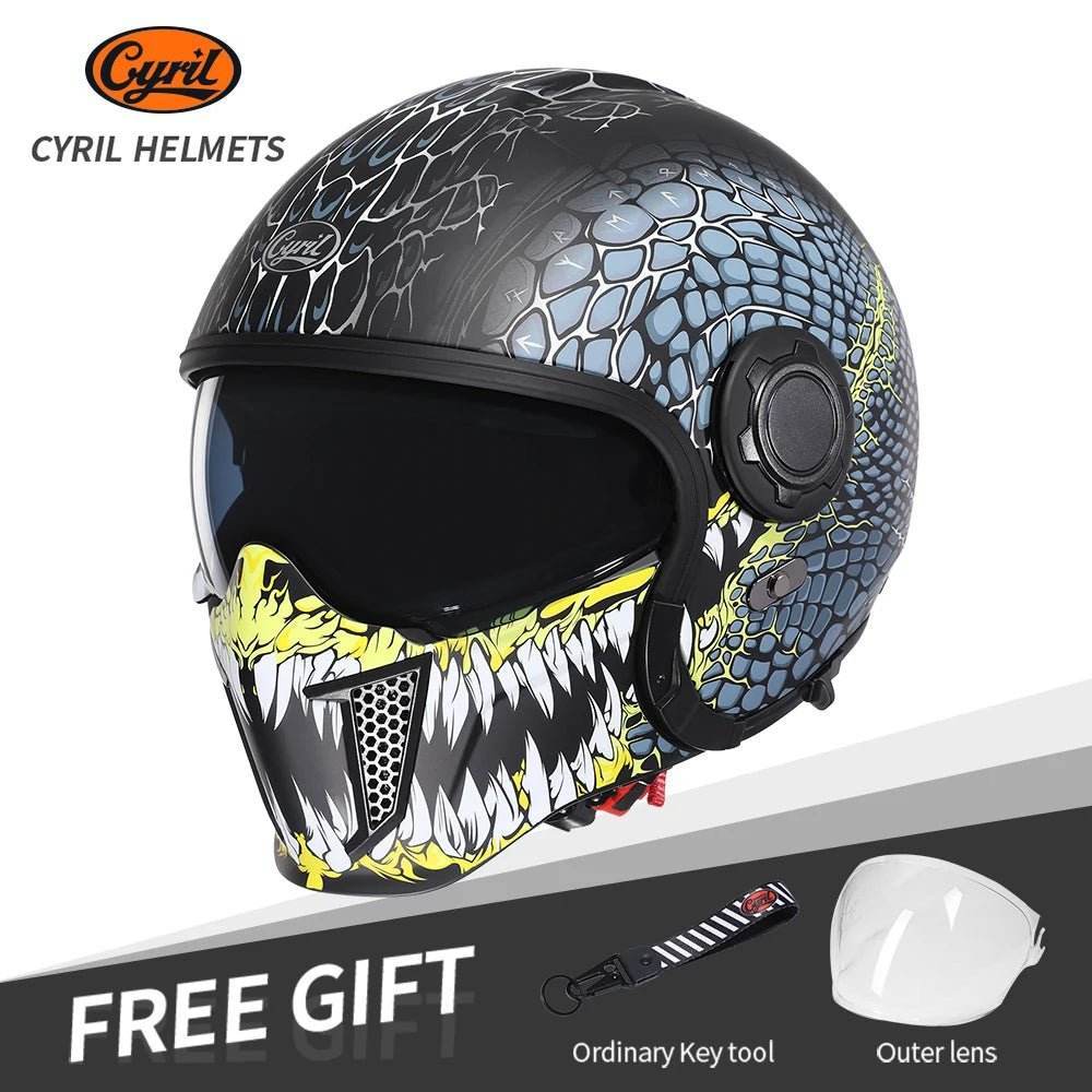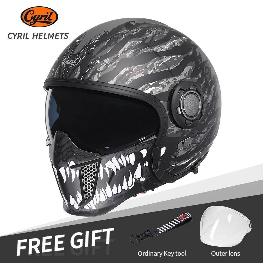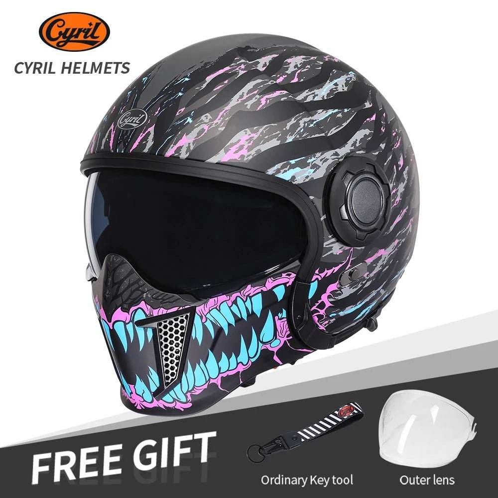 Unleash your adventurous spirit with the Retro Double Visor Teeth Motorcycle Helmet by Cyril. Designed for those who crave both safety and style, this helmet is perfect for all-season riding. Its dual visor system provides excellent sun protection and enhanced visibility, ensuring a safe journey every time.