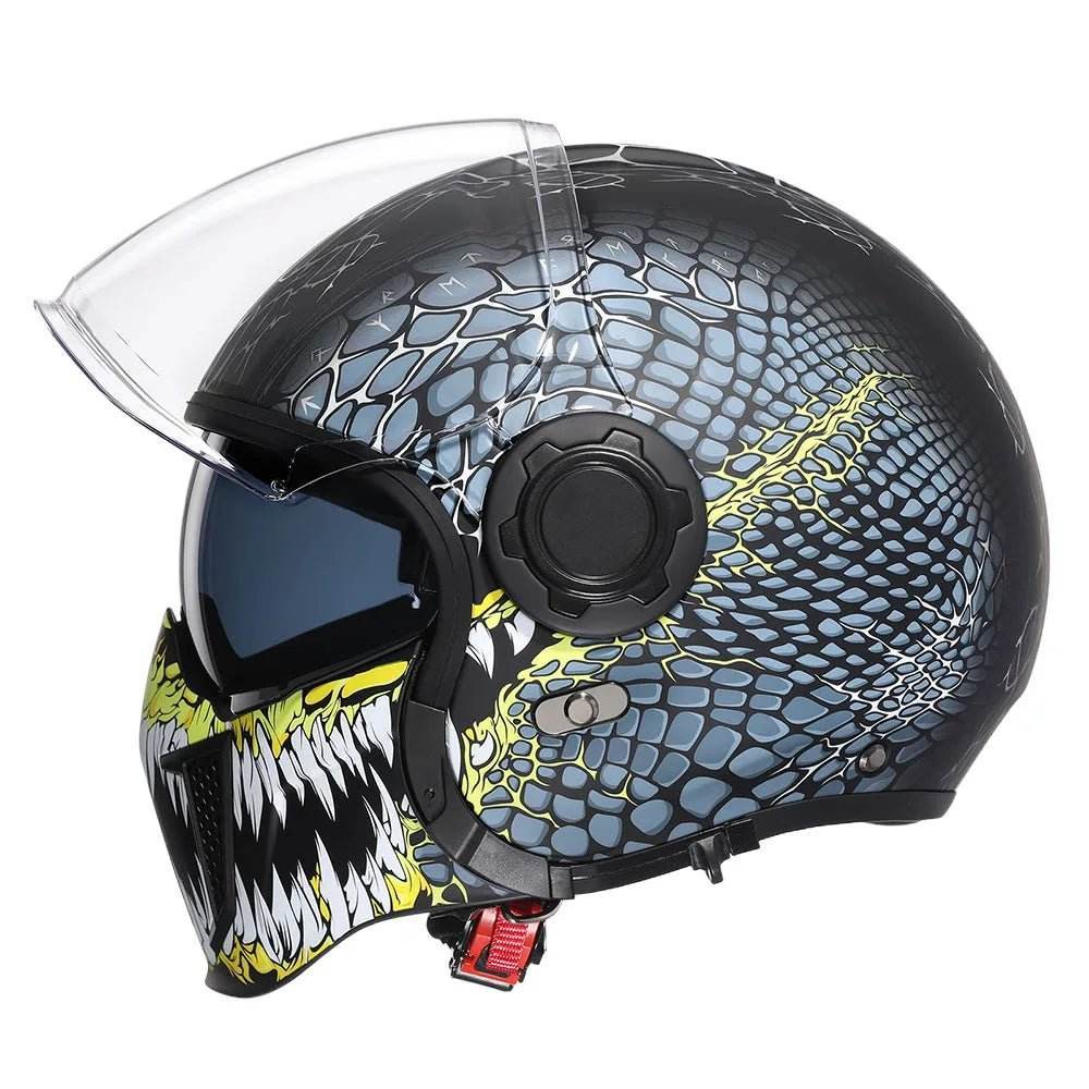 Ride in Style with the Retro Double Visor Teeth Motorcycle Helmet