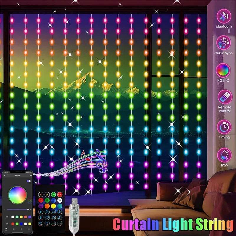 Illuminate your home with the vibrant RGBIC Curtain APP Bluetooth Control String LED Fairy Light. Perfect for any occasion, these lights offer customizable colors and patterns to create the ideal ambiance. Whether it's a festive holiday, a lively party, or a cozy evening at home, these lights bring convenience and style to any room.