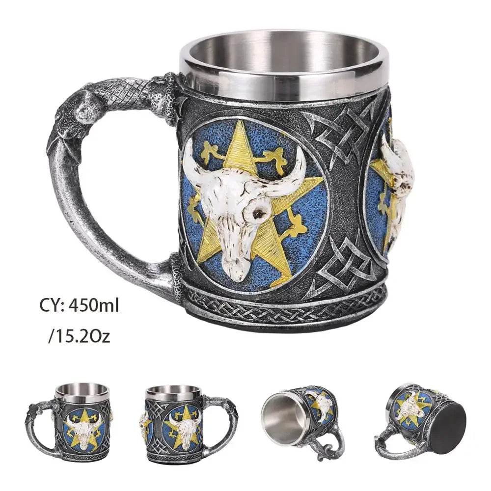 Unleash your inner warrior with the Medieval Warrior Mug by Freeson. This striking stainless steel mug, with a capacity of 450ml, is perfect for those who love a touch of fantasy in their daily routine. Whether you're sipping coffee or enjoying a cold beer, this mug adds a unique flair to your drinkware collection.