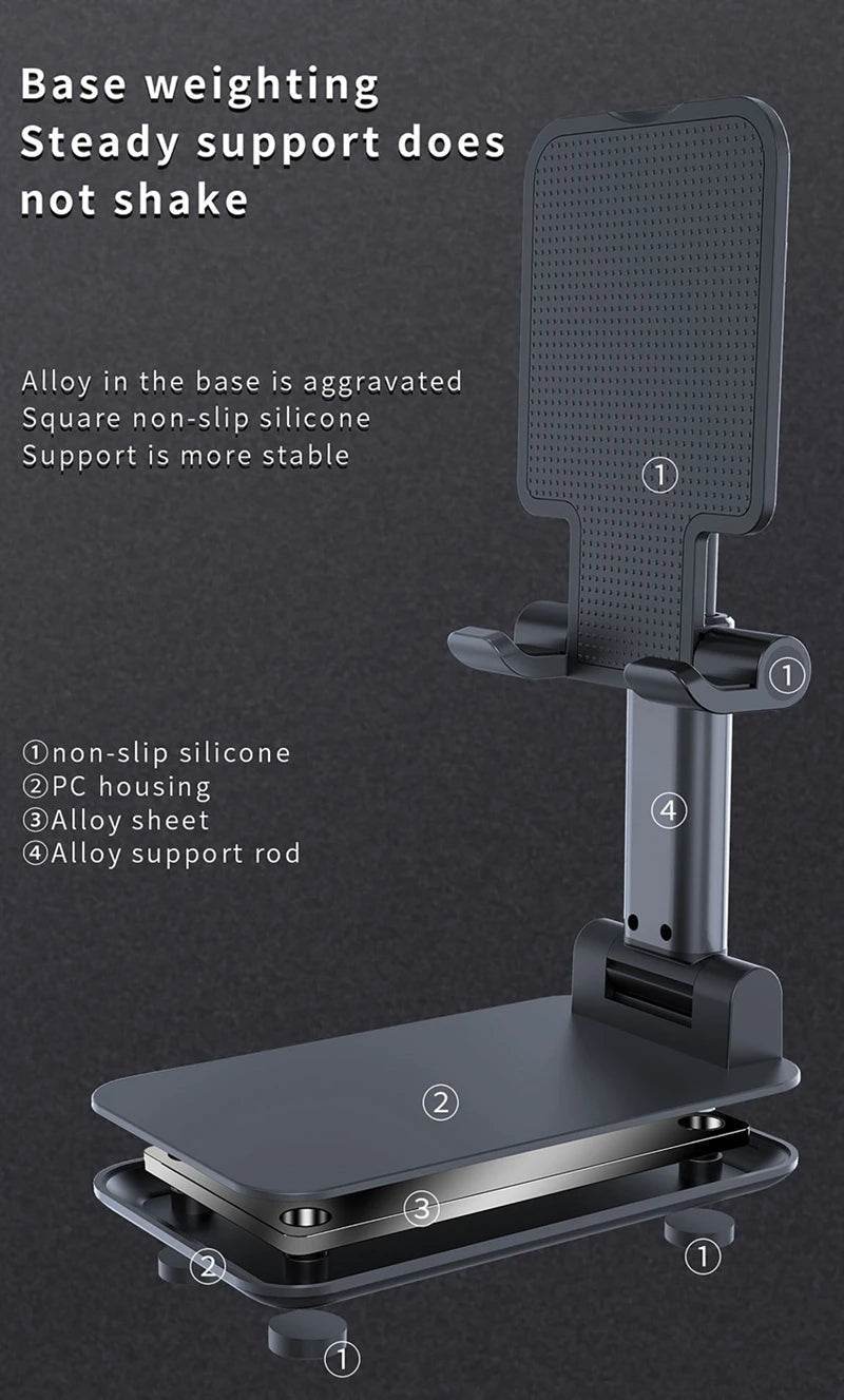 Crafted with precision, the Mobil Mate phone holder is not just about looks. It's about functionality and reliability. Its telescopic feature allows you to adjust the height and angle effortlessly, making it suitable for both smartphones and tablets ranging from 4 to 13 inches. Whether you're navigating through emails, binge-watching your favorite shows, or video chatting with friends, this stand provides the stability you need.