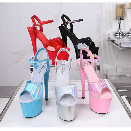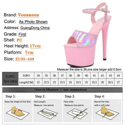 Experience the ultimate in fashion with the Women 17cm Platform Laser High Heels by Voesnees. These stunning heels are designed for women who love to stand out and make a statement. With a towering 17cm stiletto heel, these shoes elevate your style and confidence to new heights.