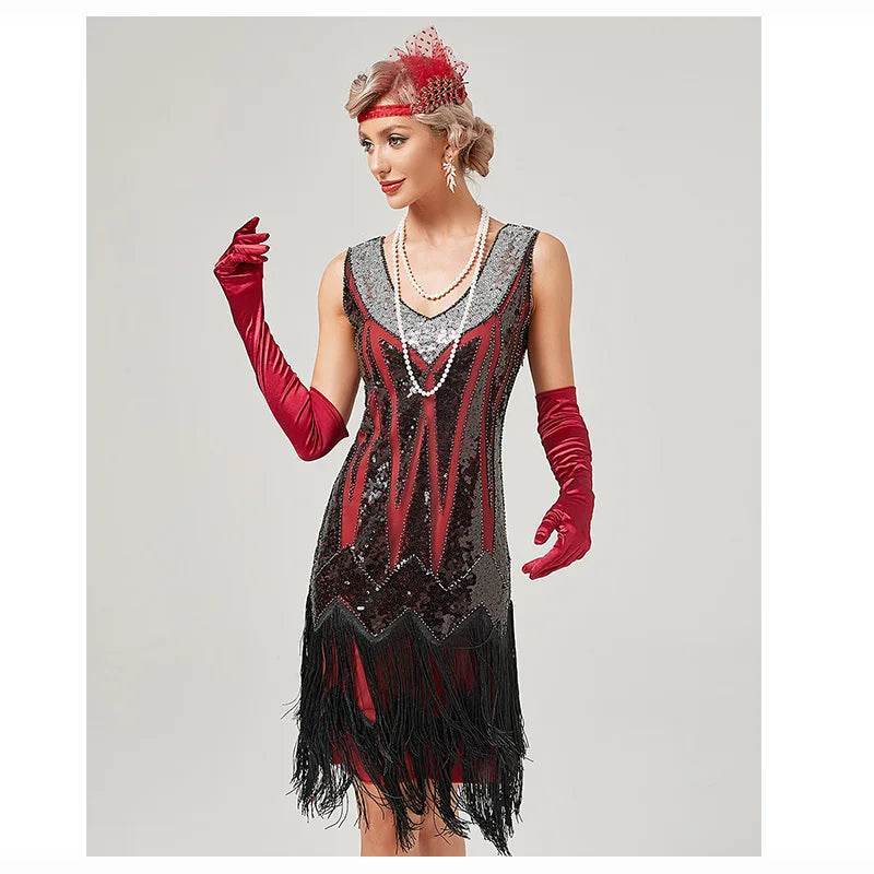 Our dress is not just about looks; it's about making a statement. The intricate sequin design and fringe detailing capture the essence of the 1920s, while the variety of colors and sizes ensure a perfect fit for everyone. The dress is part of the Costumes Plus collection, known for its commitment to quality and style.