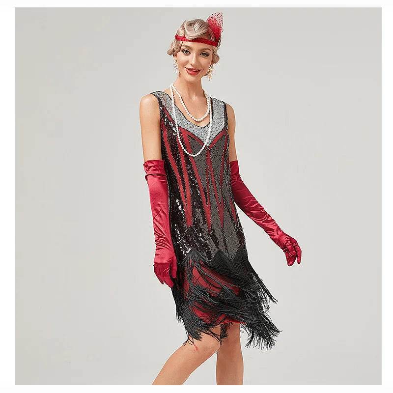 Embrace the elegance of the roaring 1920s with our Women 1920s Sequin Great Gatsby Costume Dress. This stunning piece, crafted with high-quality sequin material, is designed to make you shine at any themed party or special event. Whether you're attending a Great Gatsby soirée or a vintage-themed gathering, this dress will ensure you stand out with its bold and glamorous style.